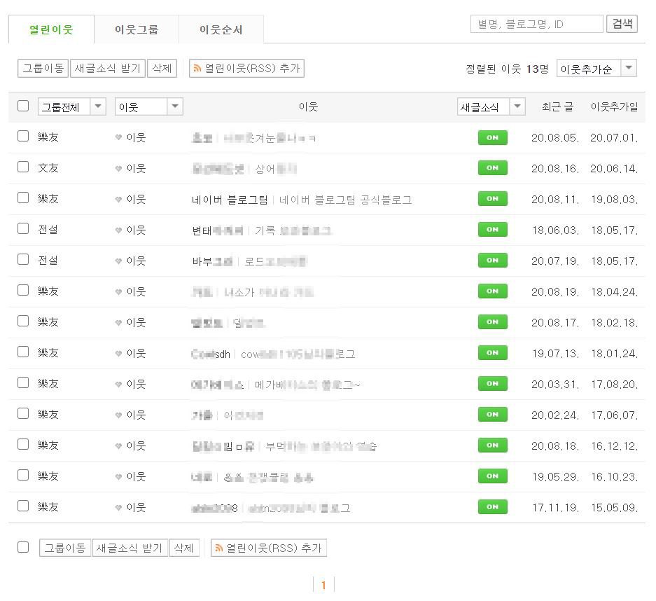 사실 서로이웃을 한 번도 정리해본 역사가 없어서 어떤 사유이며 목적인지는 잘 모르겠다. 결국 내가