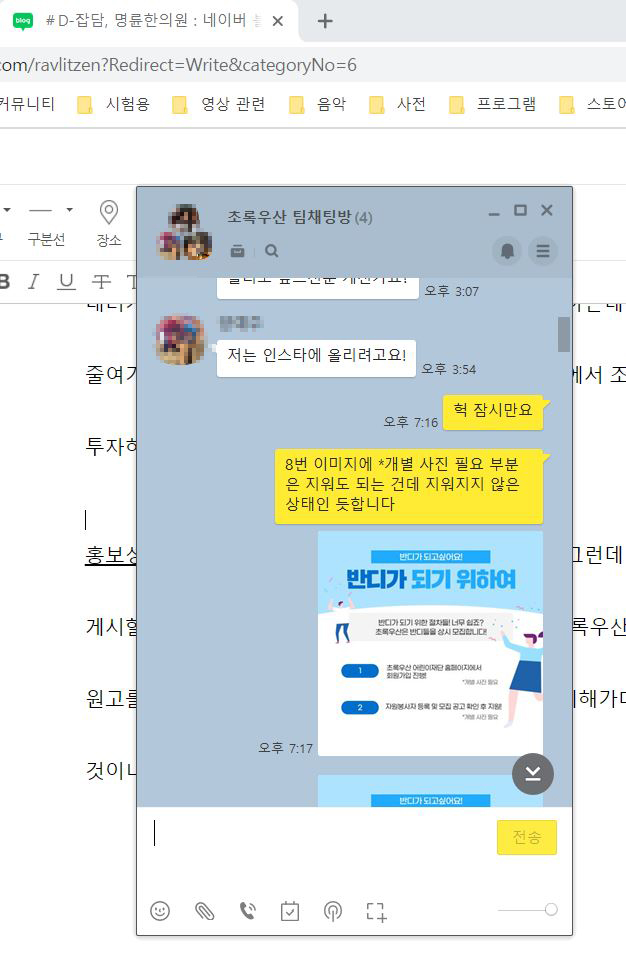 원고를 제공받는 거도 아니거니와 다른 봉사자들과 상의해가며 콘텐츠를 제작하고 블로그에 포스팅하는