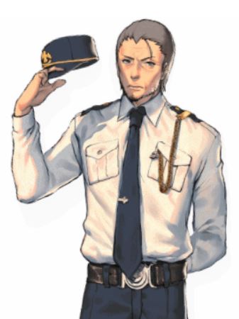 뒤로 넘겨 이마를 까고 매서운 눈초리를 한 중년의 멋진 남자지만 계약자이면서 레드크로스의