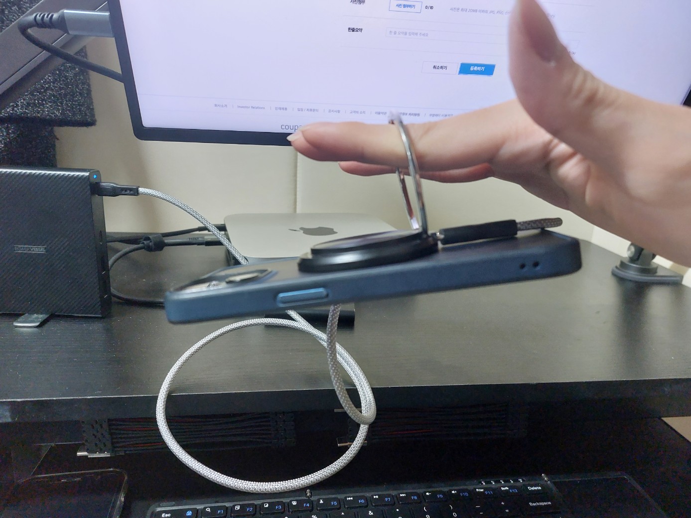 거치도 잘 되고 혹시나 싶어 고리에 손가락을 넣고 매달아도 보았는데 떨어지지 않고 잘 붙어 있었다. 아이폰 13이면