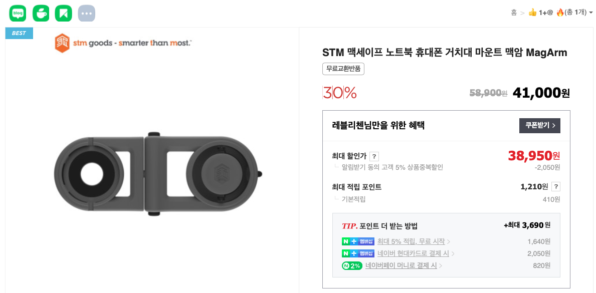 RJ컨셉스토어의 MOFT 스냅 거치대는 떼어내서 벽에다 붙이기로 하고 새해가 밝으면 STM MagArm 2개