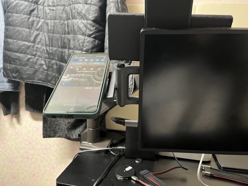 무엇에 쓰는 물건인고 하니 모니터 옆에 스마트폰을 띄울 수 있도록 해주는 장치다. 스마트폰을 보조 모니터처럼