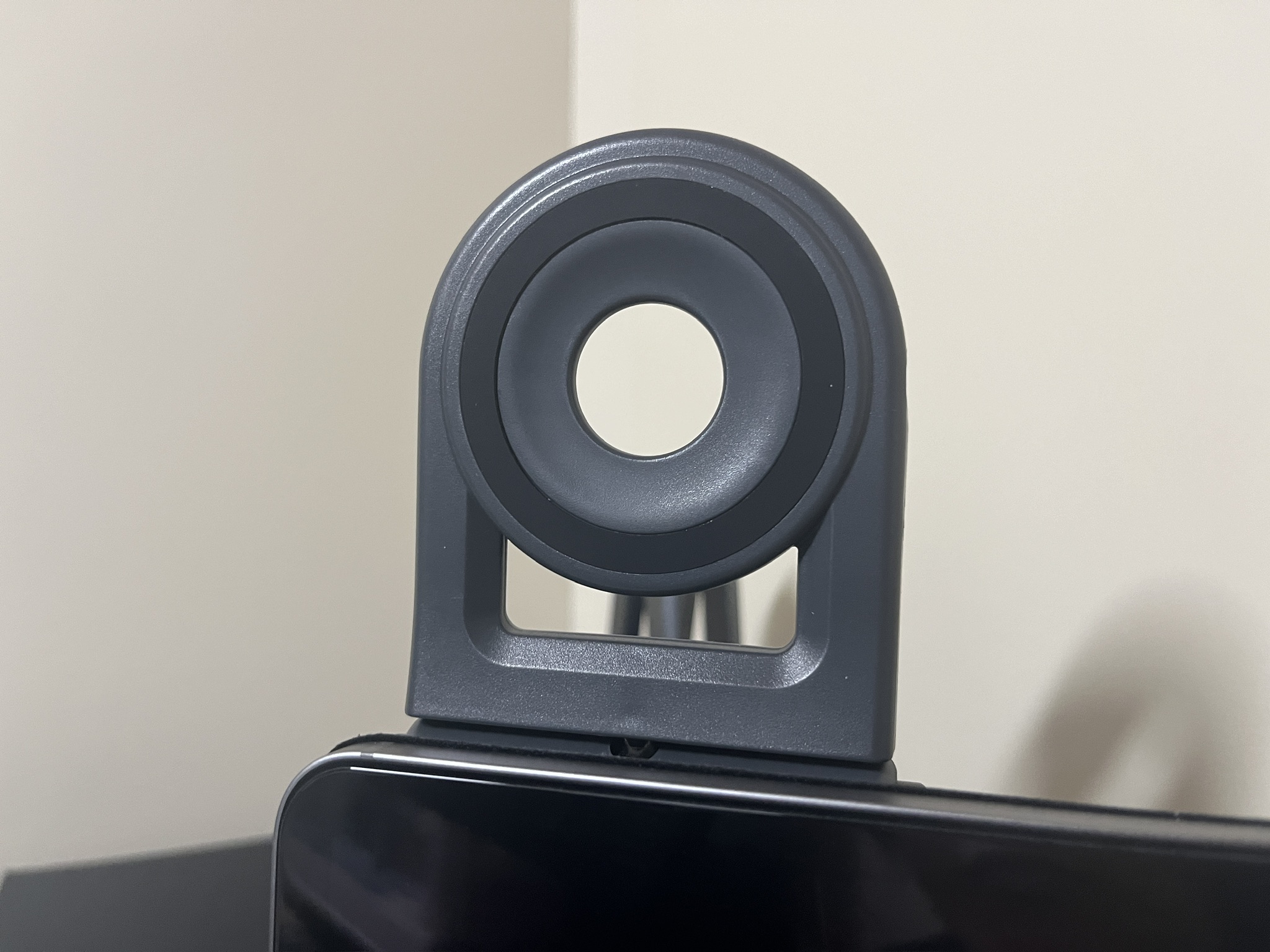 스마트폰이 부착된 후면에 비어있는 공간에는 맥세이프 충전기를 부착해서 거치와 동시에 충전할 수 있도록 하는