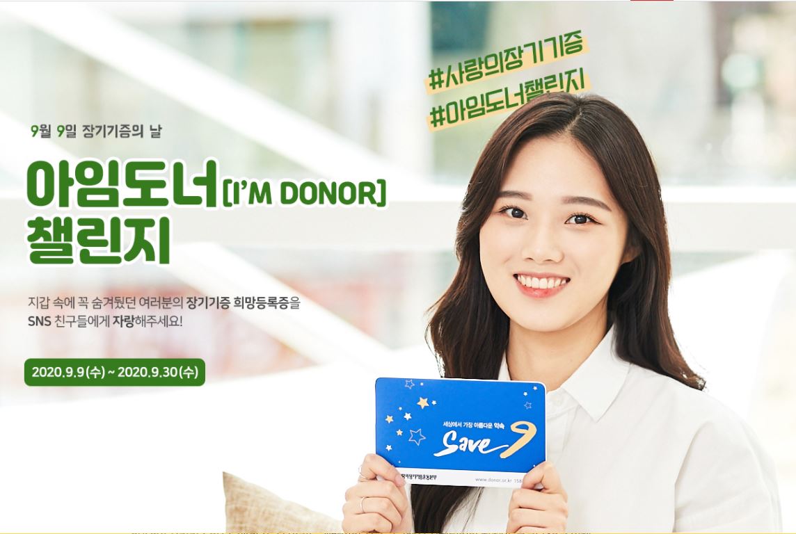 시간이 얼마나 지났다고 이번에는 장기 기증 등록 후 제공되는 기증 카드를 SNS 상에 인증만 하면