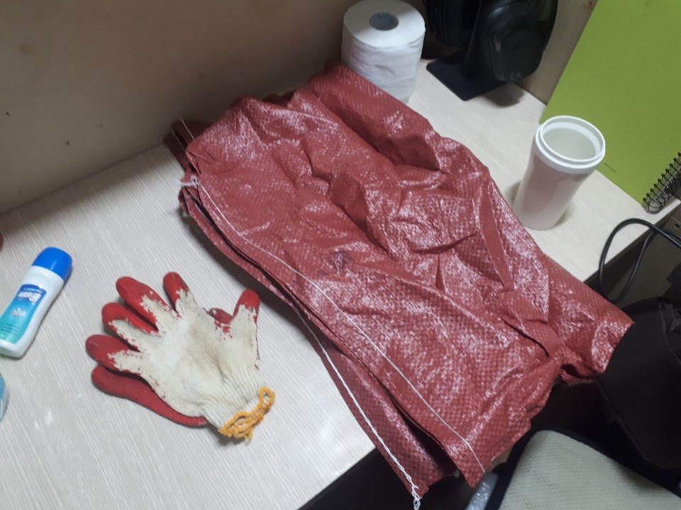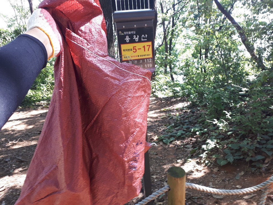 준비물로는 쓰레기를 집을 목장갑과 공사장에 널려있었던 마대자루. 갈길이 멀기 때문에 급히