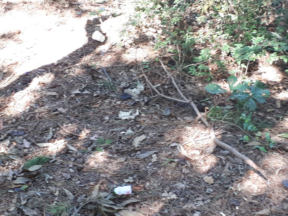 찔리기는 했는지 주변 사람들 눈에 안 띄도록 등산로에서 멀리 벗어난 위치에 쓰레기를 던져댄