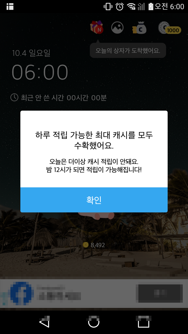 1,000캐시를 지급해주니까 기왕이면 받도록 하자. 그리고 12시간마다 초기화가 되니 까먹지 말고