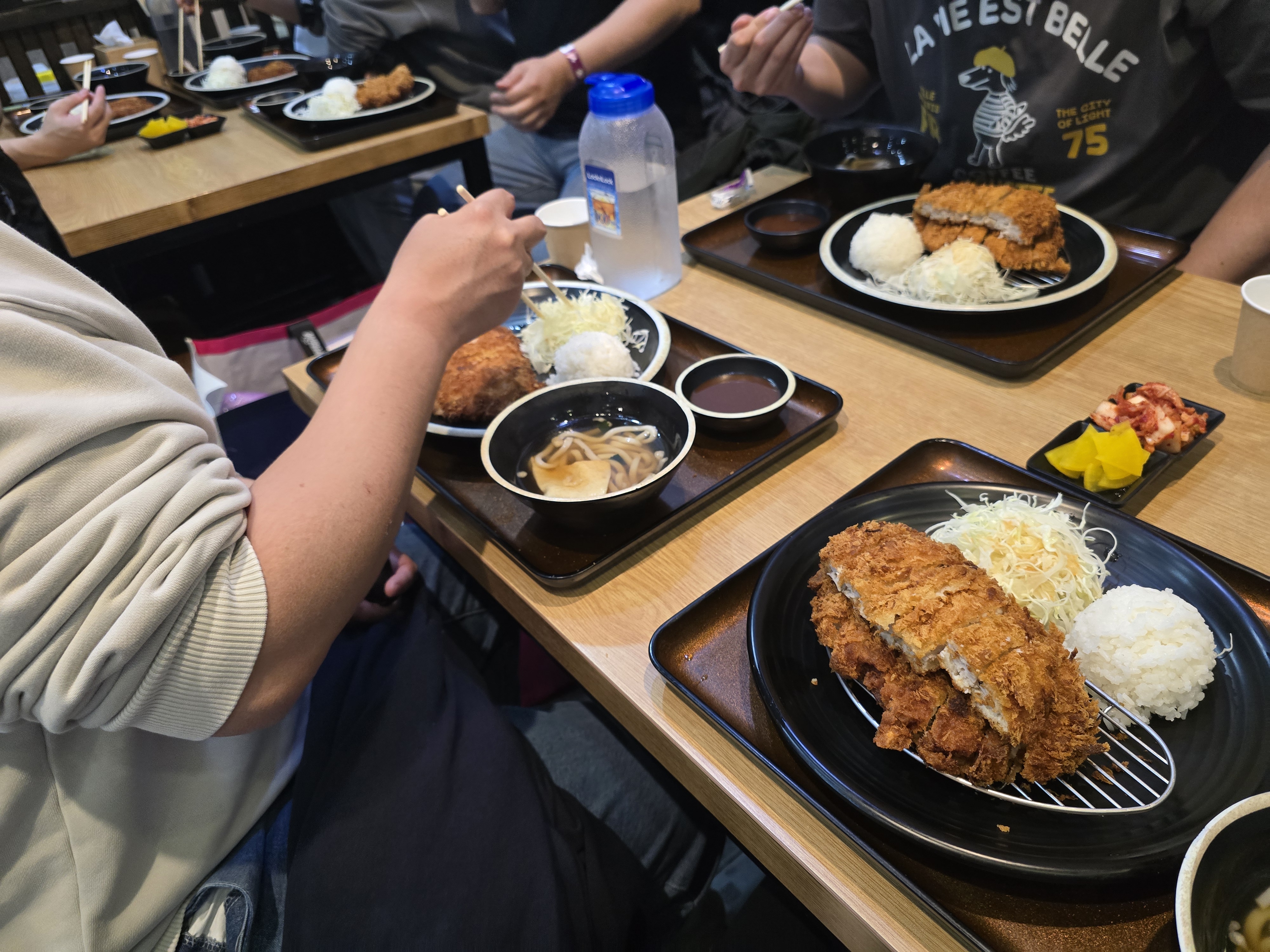한 친구는 토요일 저녁에 귀가를 했고 나를 포함한 나머지 인원은 다시 숙소에 복귀했다. 저녁에 돈가스 먹었는데