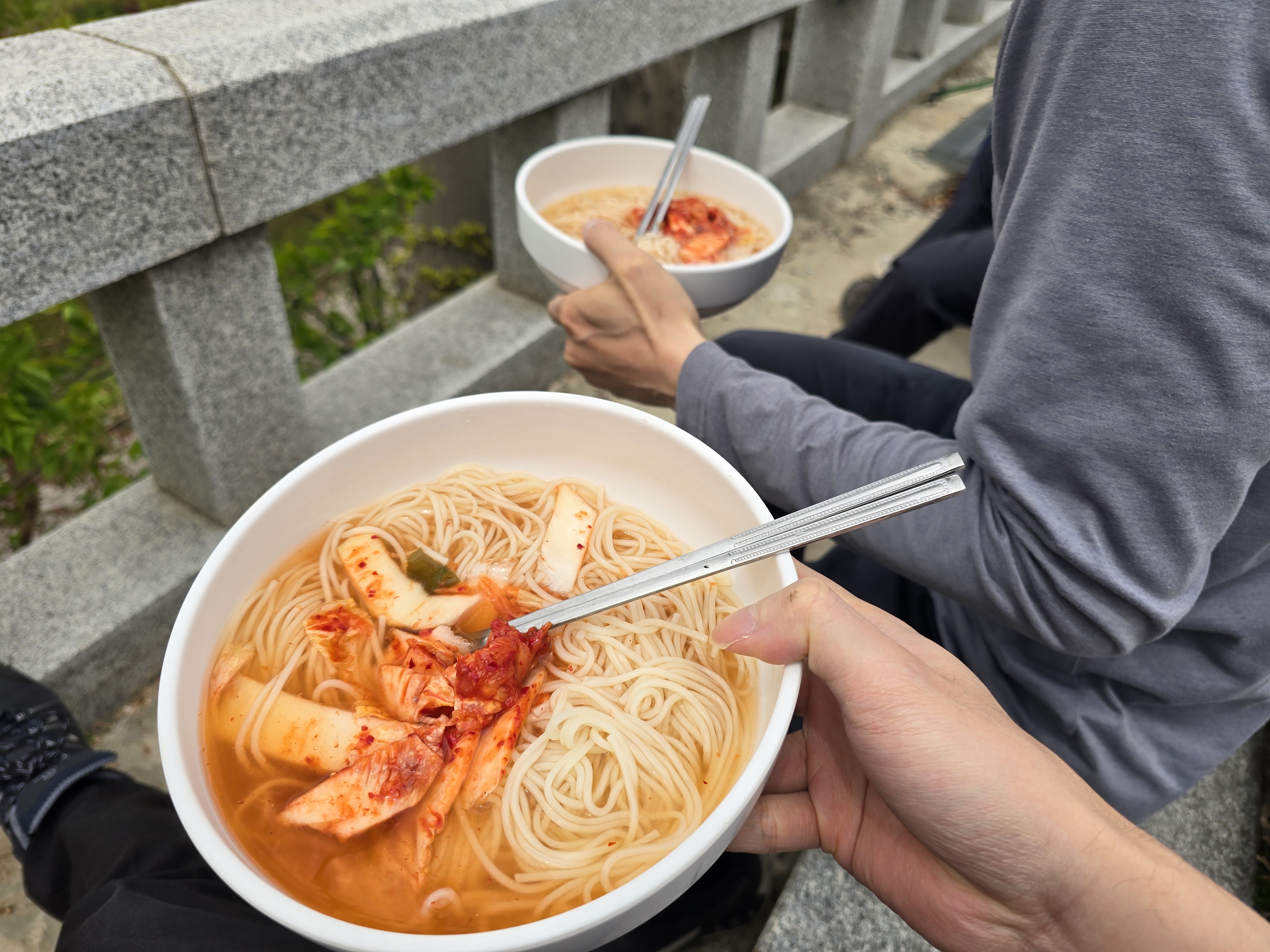 여정이었지만 과연 정상에 있는 절에서 무료로 나눠주는 국수 2그릇 얻어먹고 절에서 파는 시원한 음료 마시니