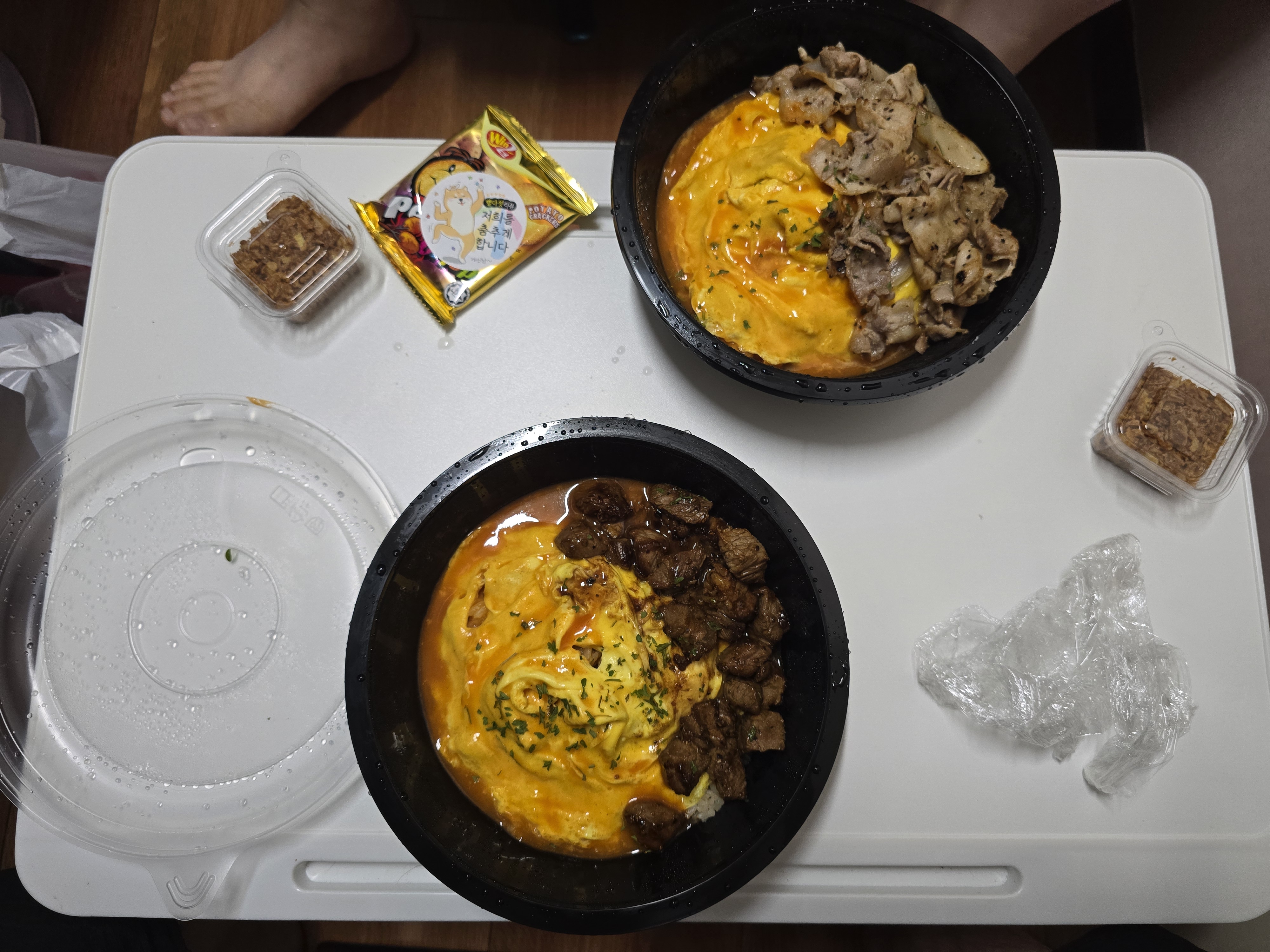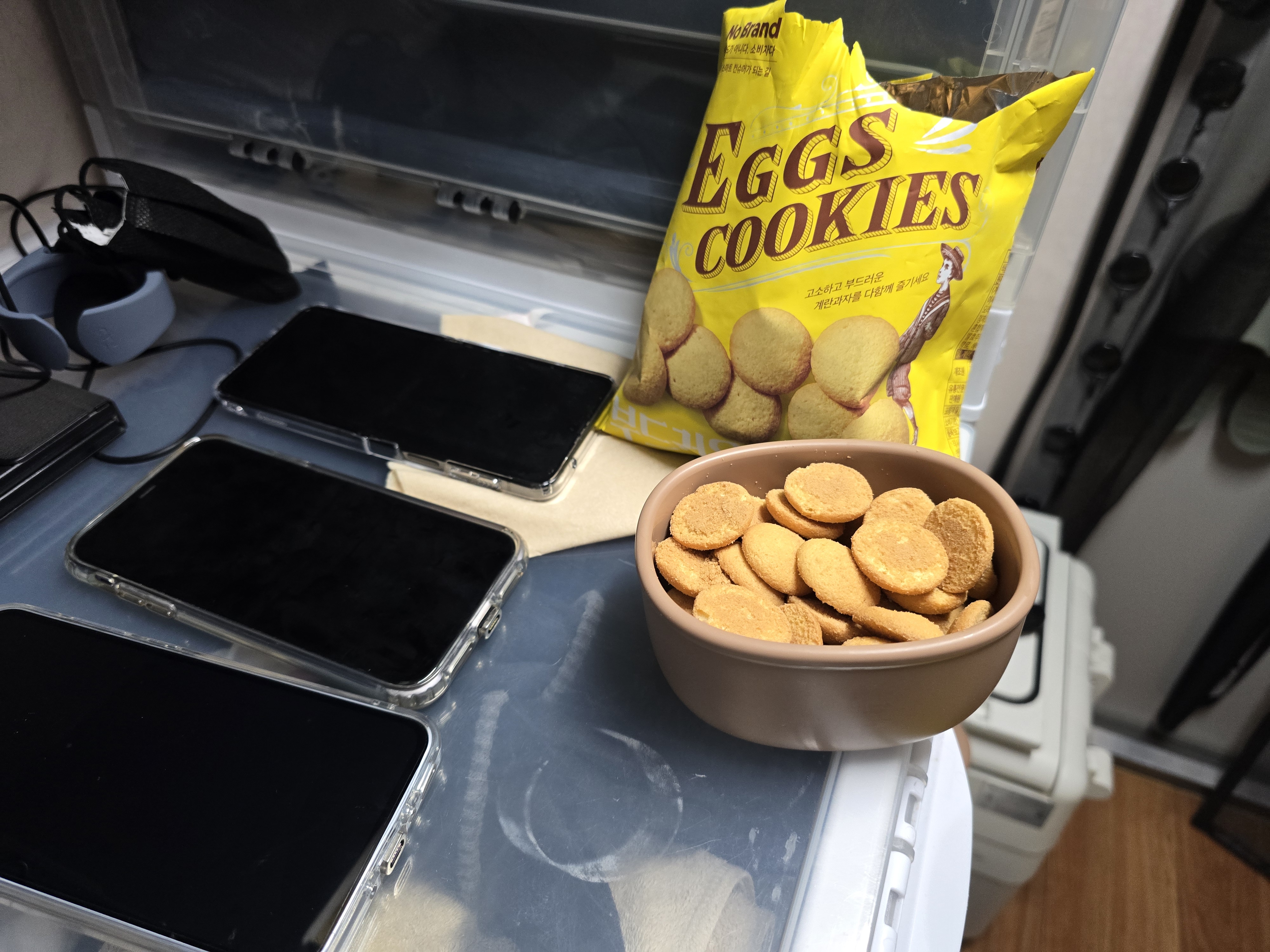 음료수 나눠주셔서 얻어먹고 추가로 이웃집으로부터 계란 과자 받아서 먹었다. 감사한 일이 많군.