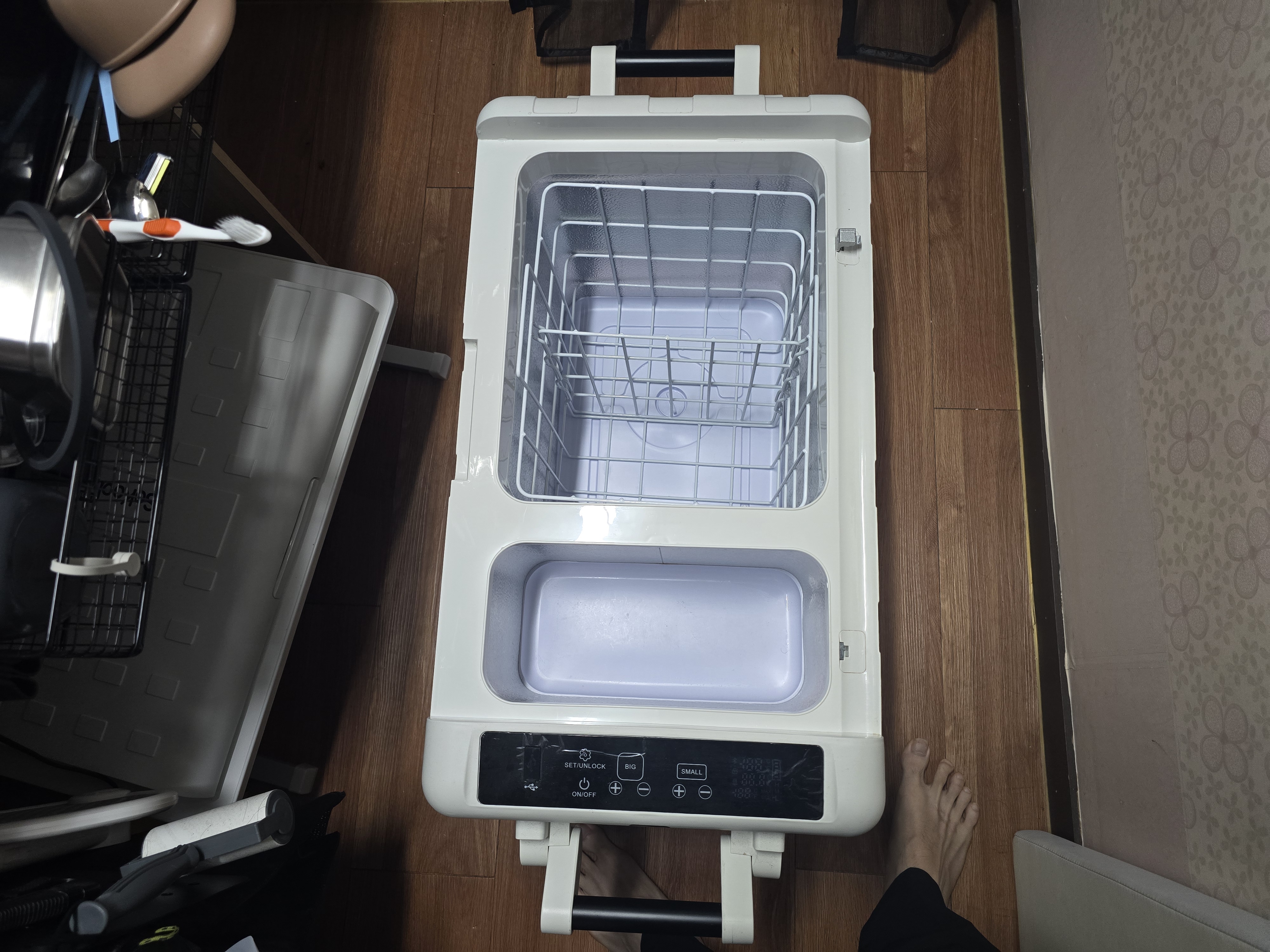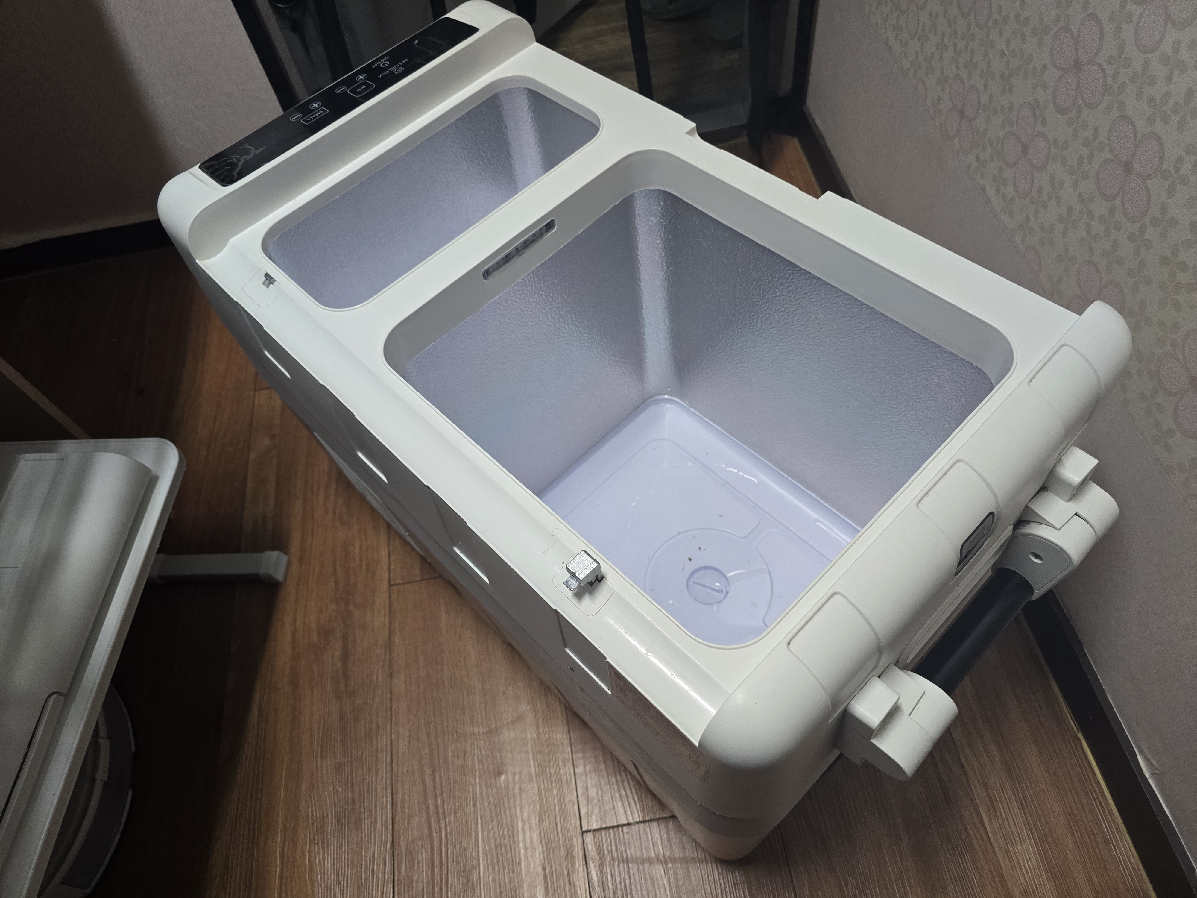 지난주에는 냉동고 어떻게든 고쳐서 쓰려고 했지만 결국 문짝이 완전히 박살나서 버려야 했지. 오늘 아침에는