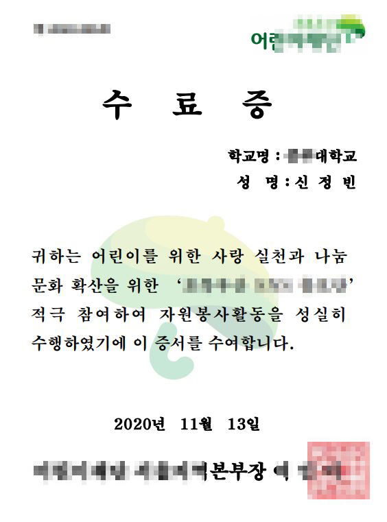 우연한 계기로 초록우산 어린이재단의 온라인 홍보단 일원으로서 활동을 했었고 그런 덕분에