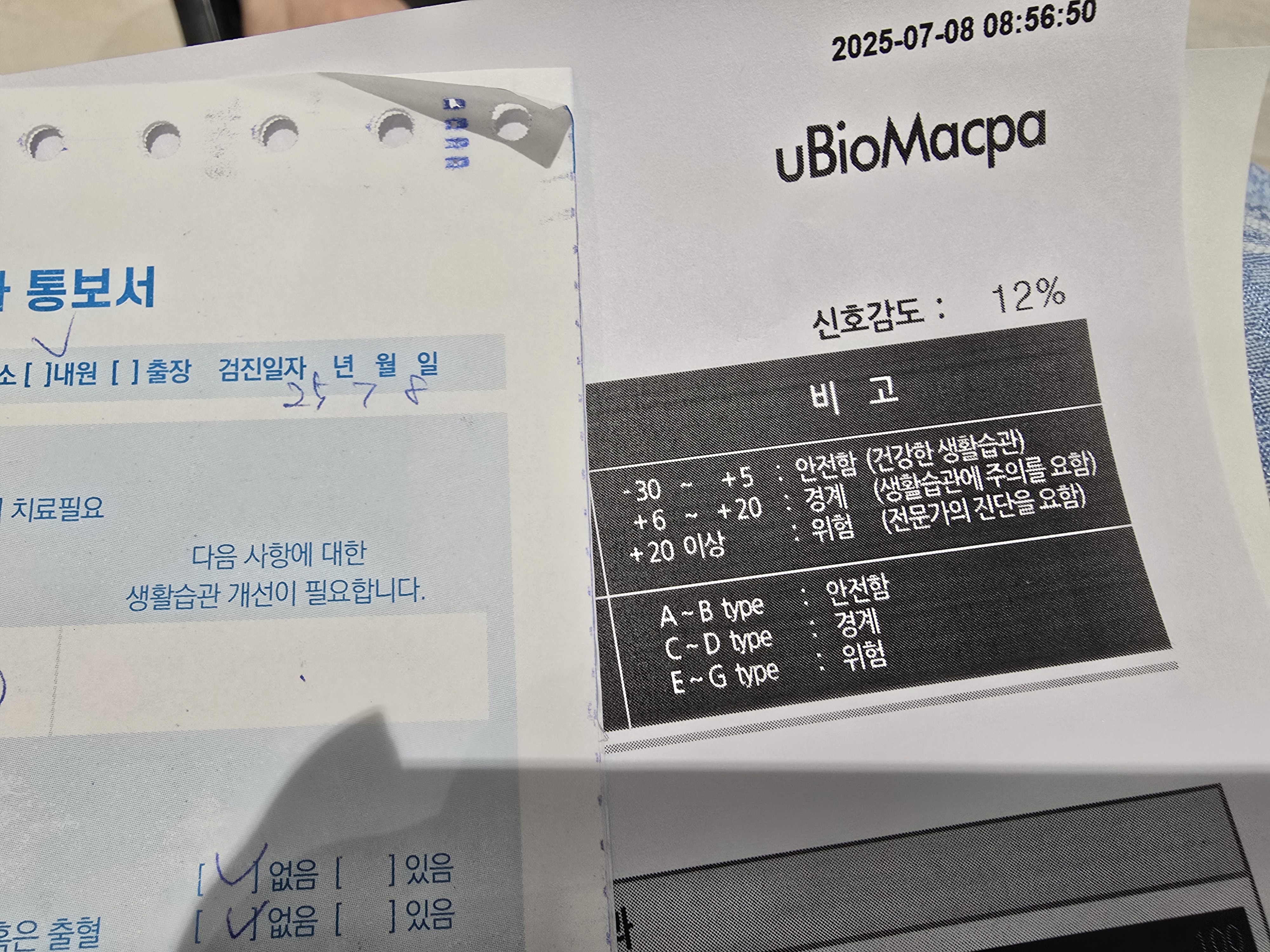 옷을 갈아입고 이것저것 검사 받았는데 대부분은 그다지 이상이 없었다. 조금 충격이었던 점은 역시 몸무게가