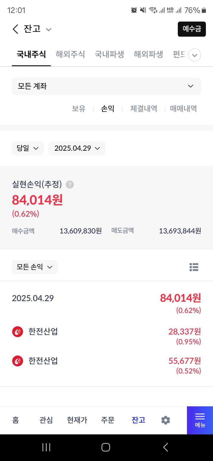 아침에는 주식으로 8만원 정도 벌었다. 추가적으로 매매하기에는 너무 시뻘개서 들어갈만한 맛이 안 났다.