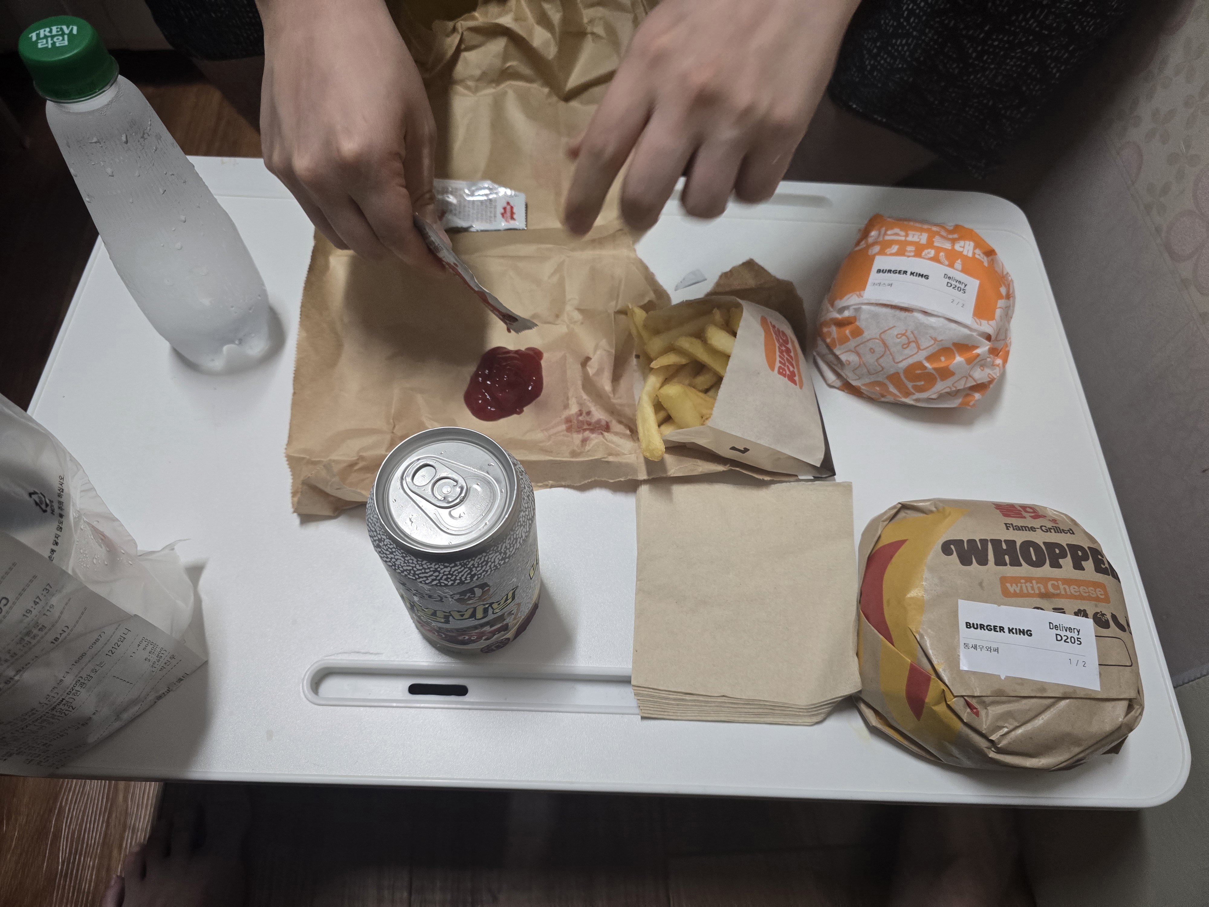 기운이 다 빠져서 그냥 친구랑 버거킹 배달시켜 먹었다. 5월 뭔가 초장부터 안 풀린다 싶더니. 내일도 종일