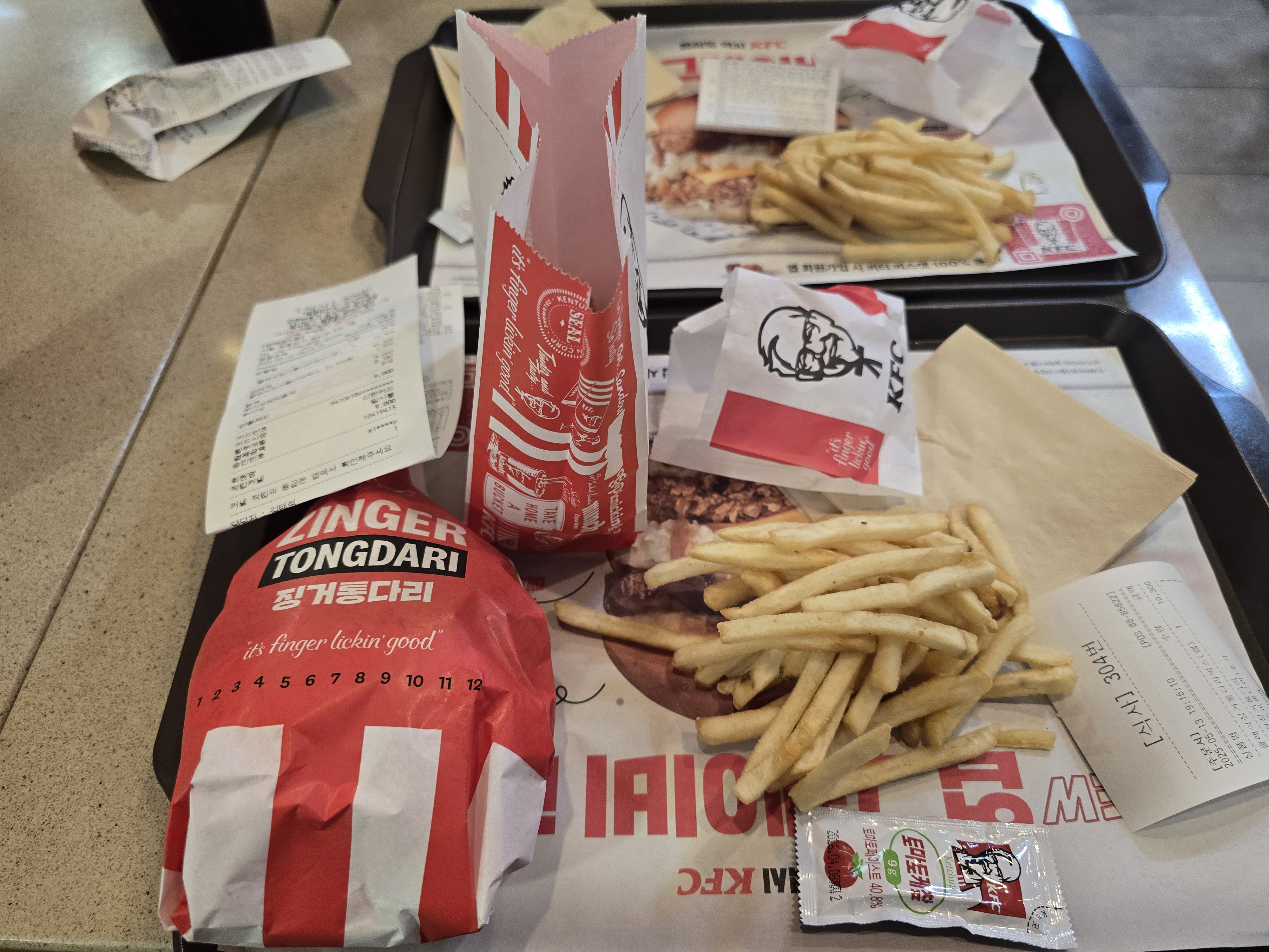 친구가 KFC 먹자고 해서 먹으러 갔다. 다녀오니까 20시였고 씻고 추가로 받은 간식 먹으니까 벌써 22시다.