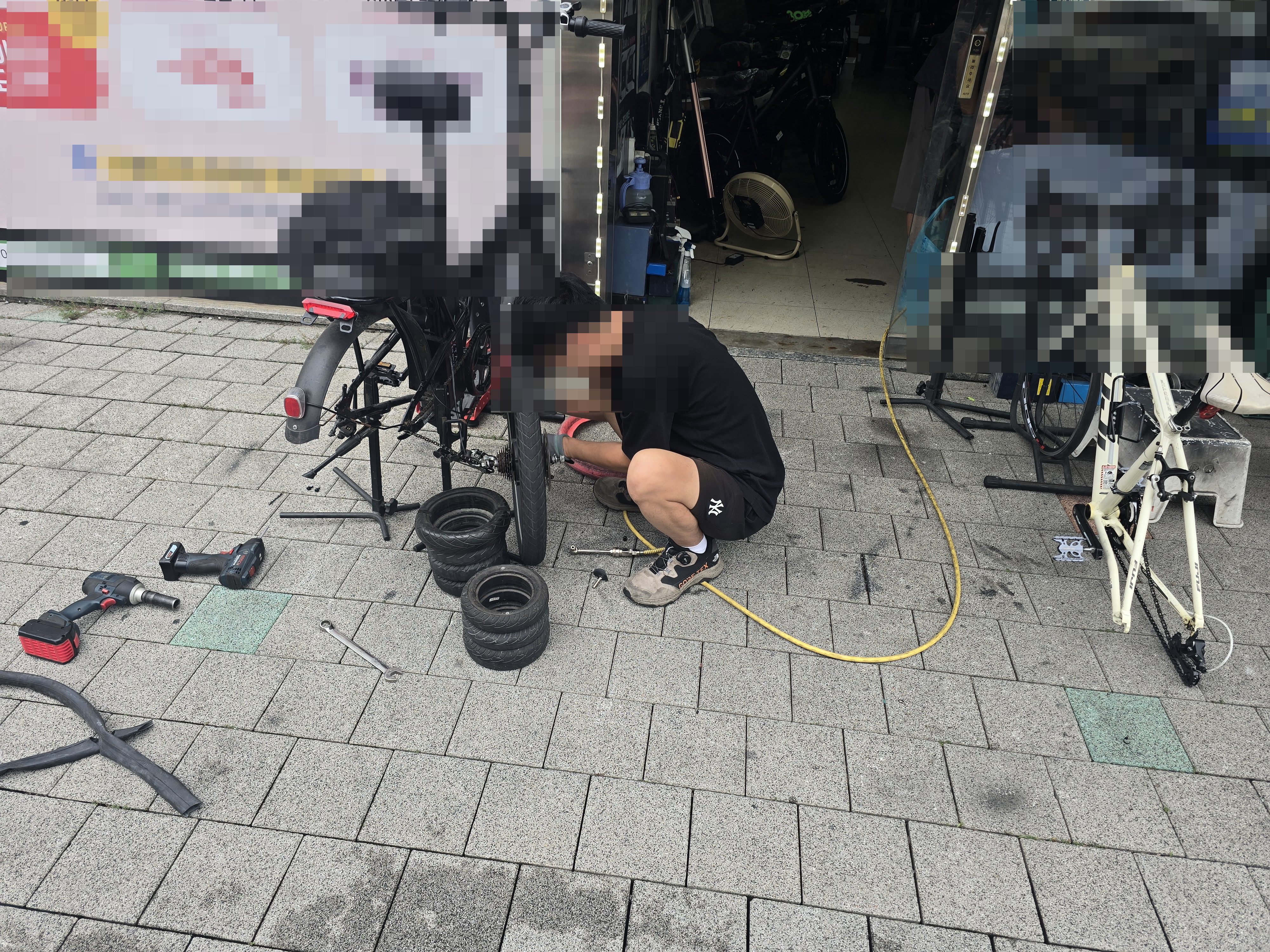 좀 타보니까 곧바로 공기가 빠졌다. 결과적으로는 바퀴를 거의 끌다시피 해야 해서 그대로 내친김에 전기 자전거 전문
