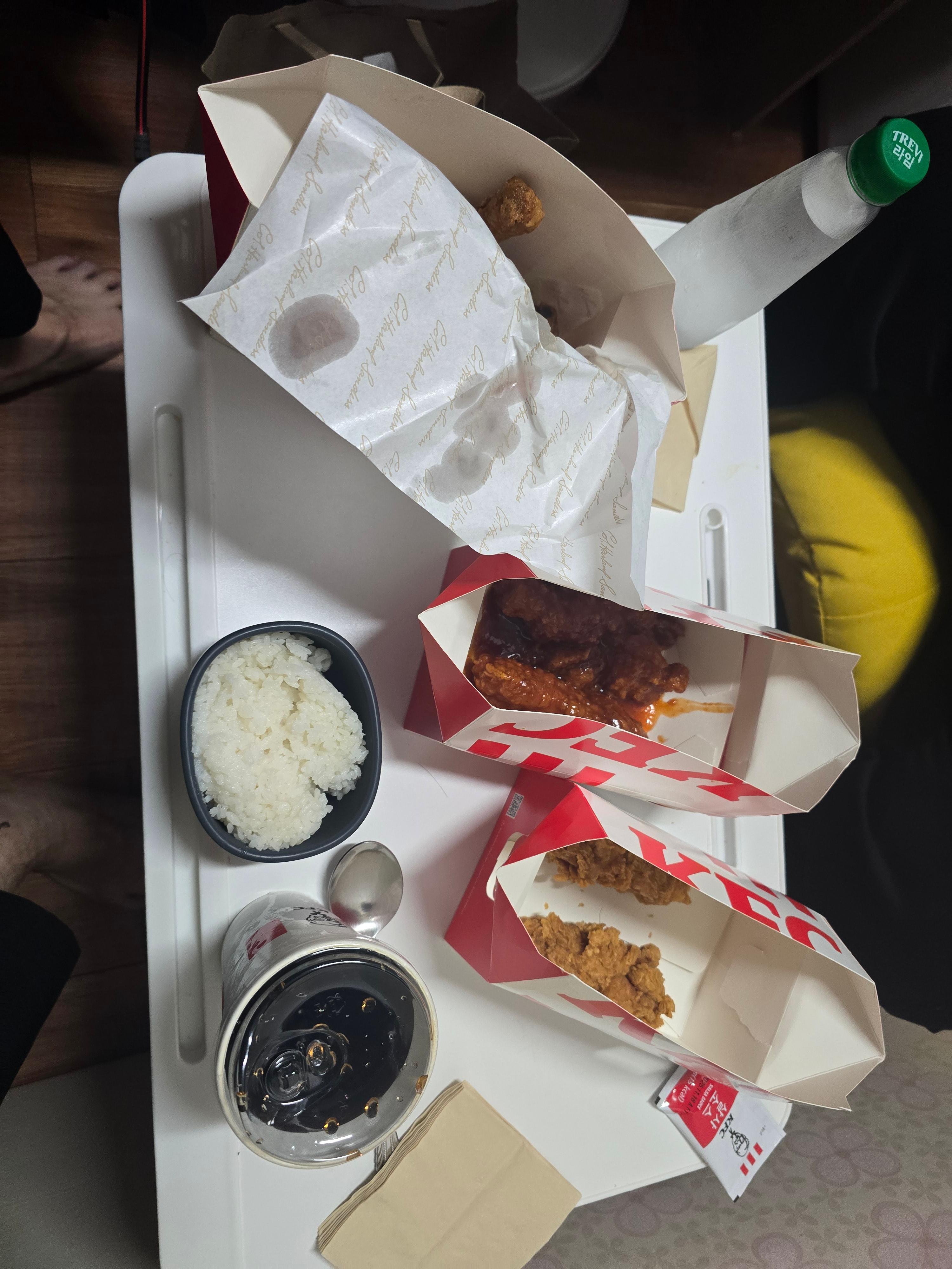 퇴근까지 무난했나. 보고도 무사히 마쳤고. 집에 돌아오니 친구가 KFC 사와서 같이 먹었다. 커피까지