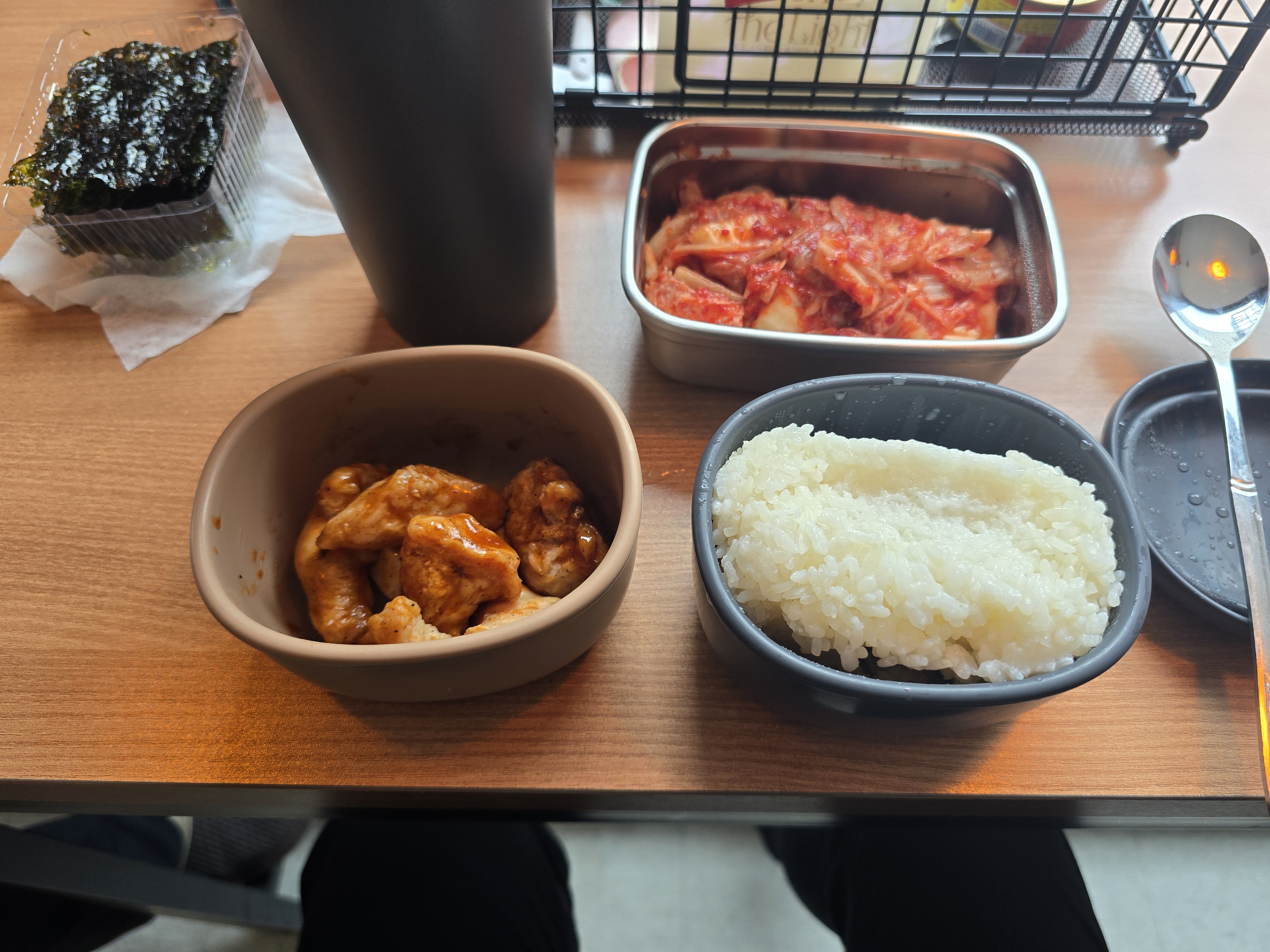 점심은 나름대로 양껏 먹었다. 닭가슴살에 김, 김치. 그리고 새우탕 사서 먹었다. 원래는 공화춘 짜장 먹을