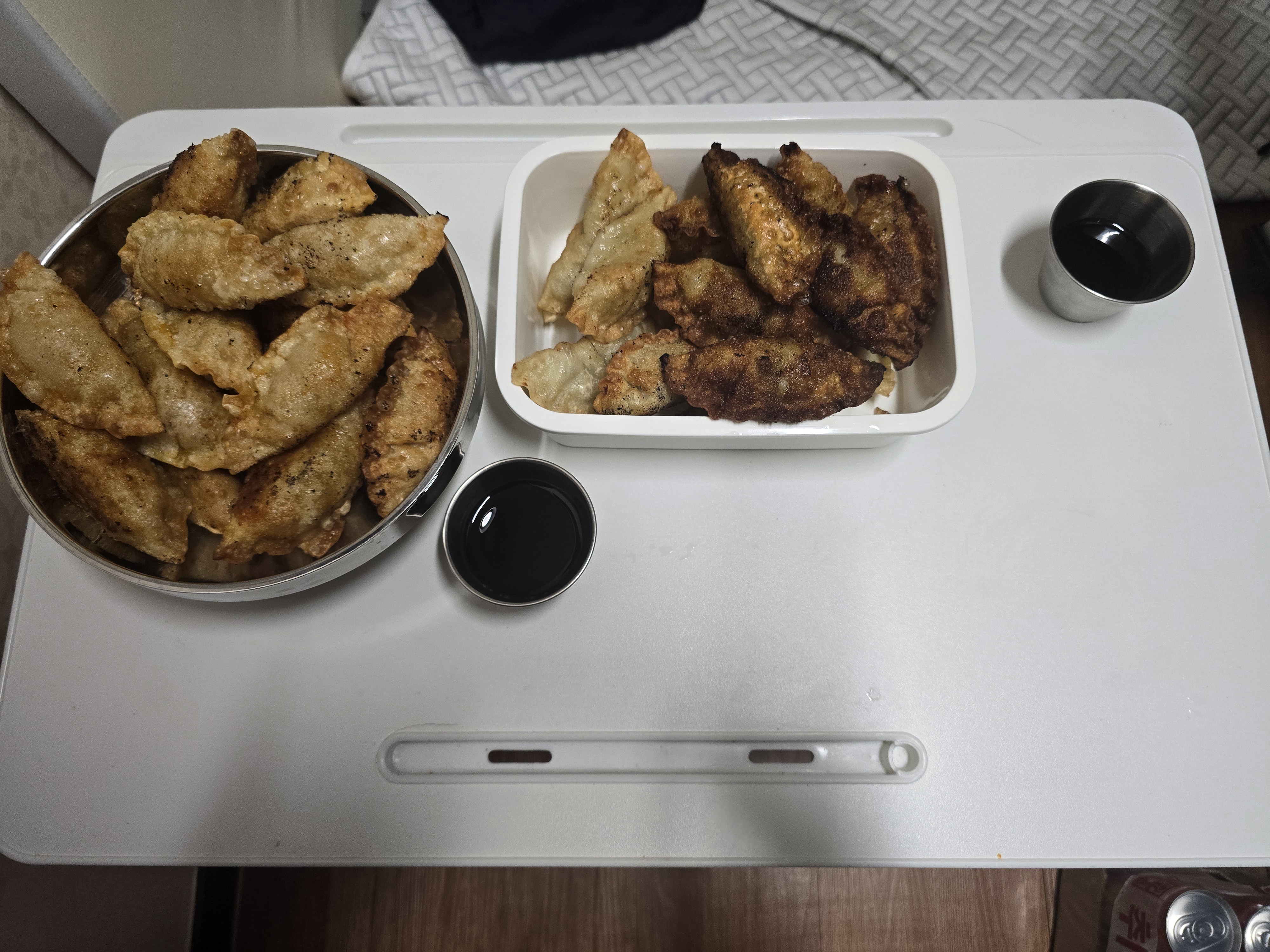 내일 한번 두고 봐야지. 집에 돌아와서 친구가 튀겨준 군만두로 저녁 먹었다. 맛은 있긴 했는데