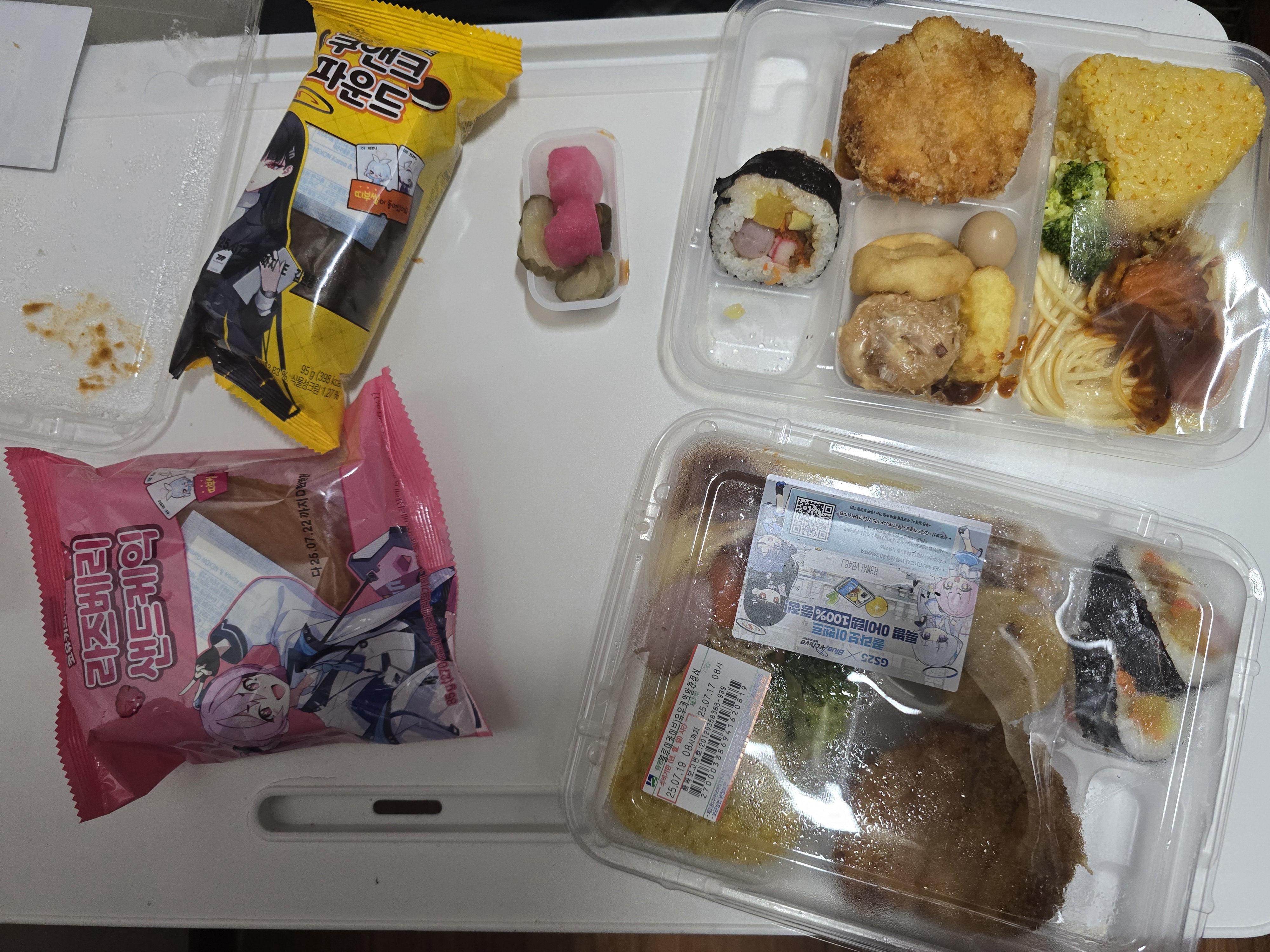 저녁에는 블루아카이브 콜라보 이벤트가 있어서 GS25 도시락 먹었다. 맛도 진짜 없고, 구성도 별로더라.