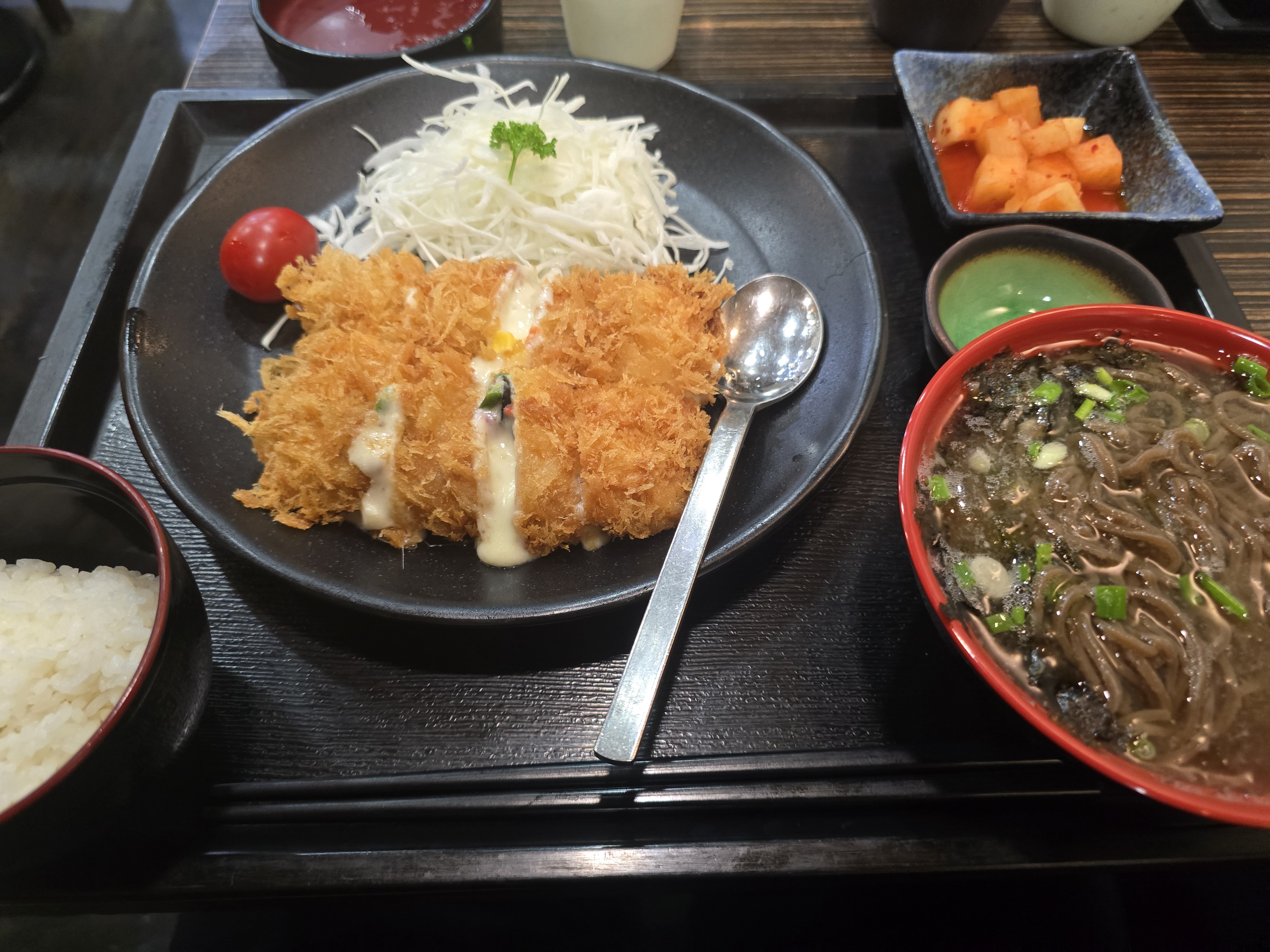 저녁으로는 치즈돈카츠 정식 먹었다. 맛있군. 특히 내 돈 내고 먹는 게 아니라서 맛있는 건가. 이렇게 일하고서