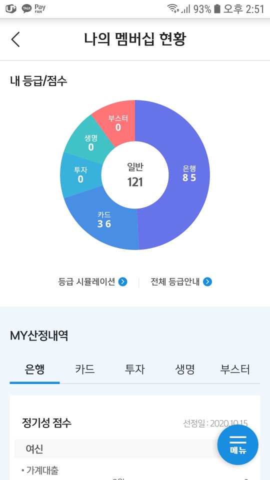 은행 거래 실적 쌓여서 멤버십 높아짐.
