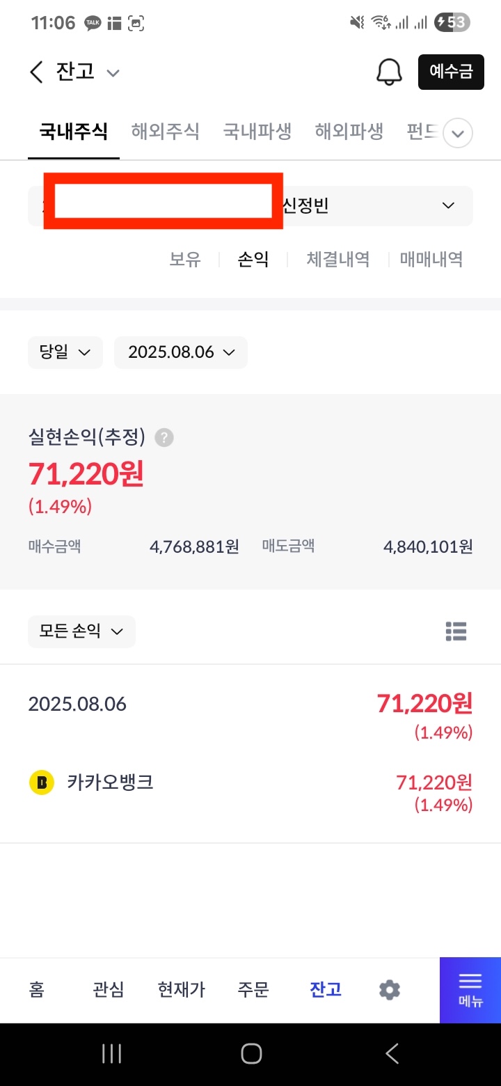였는지 정확히 기억은 안 나지만 주식 매도해서 7만원 정도 벌었다. 솔직히 더 오를줄 알았기 때문에 관망해볼까