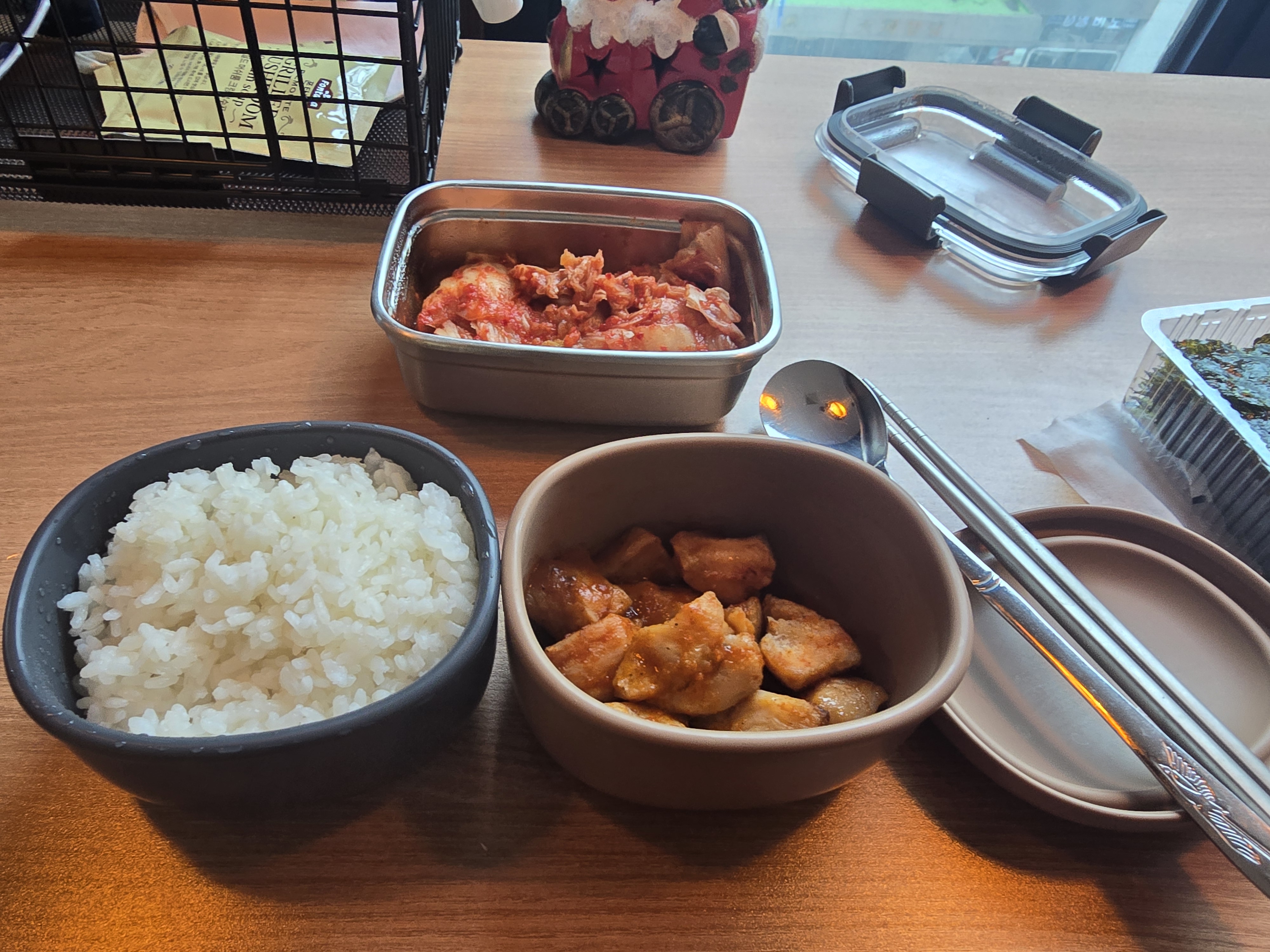 내리기 시작해서 살짜쿵 눅눅해지긴 했지만 말이야. 아침에는 친구 방에 들러서 닭가슴살 잊지 않고 챙겨오긴
