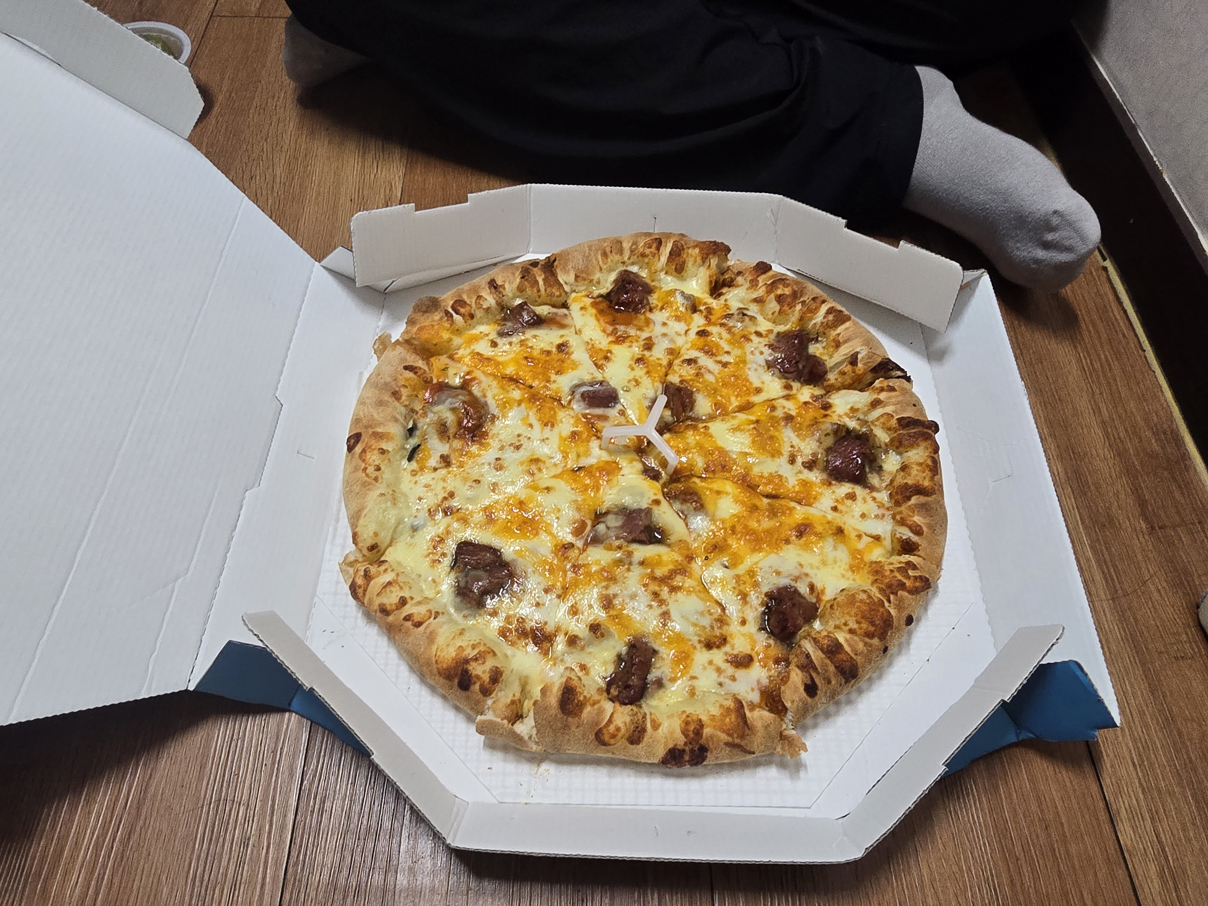 퇴근하고 돌아오니 친구가 피자 포장 주문했다고 같이 가자고 해서 나갔다. 귀찮구만. 사준다니 따라가서 먹기는