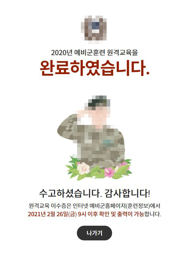 2020년 예비군 5년차 수료 처리 됐네요