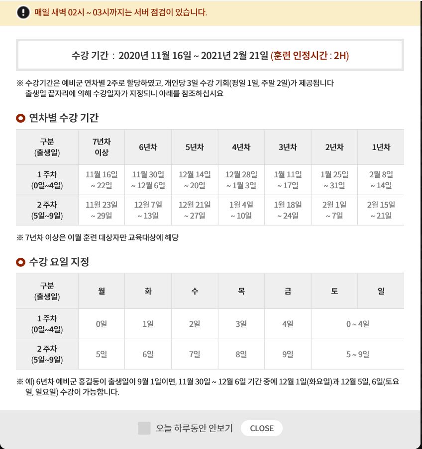 생각했는데 역시나 어림도 없는 소리였다. 다시 예비군 홈페이지에 가서 훈련 정보를 확인하니 과연