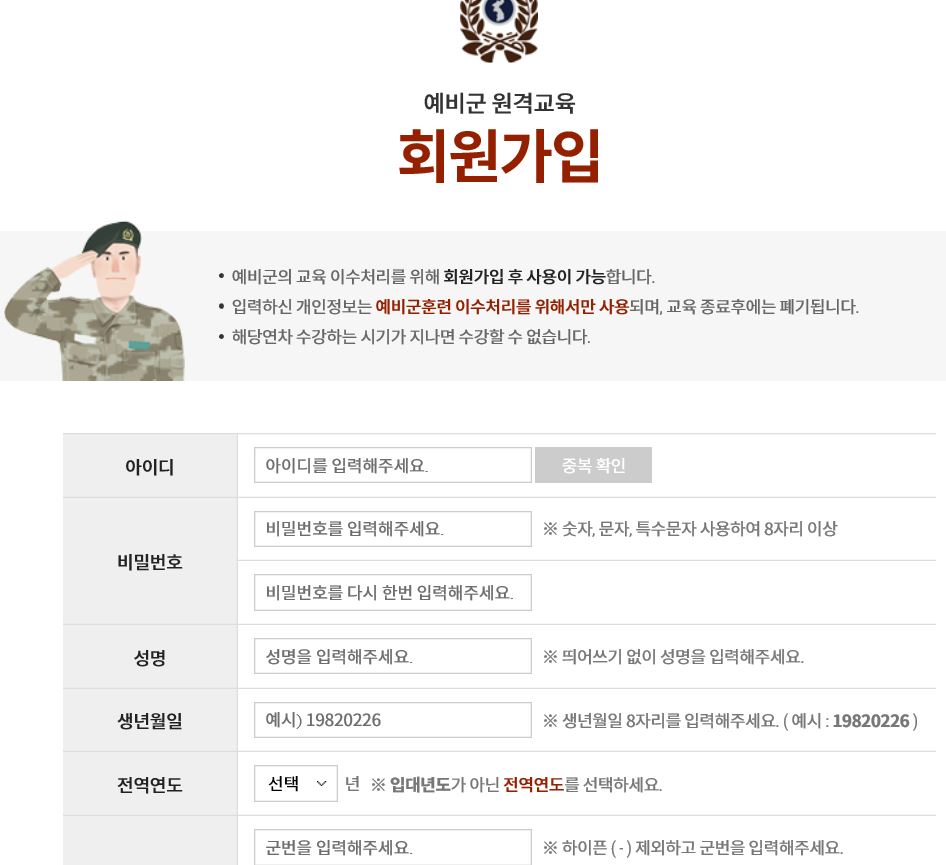 ① 예비군 5년차인 나도 예비군 원격교육을 위해 다시 회원가입했다.