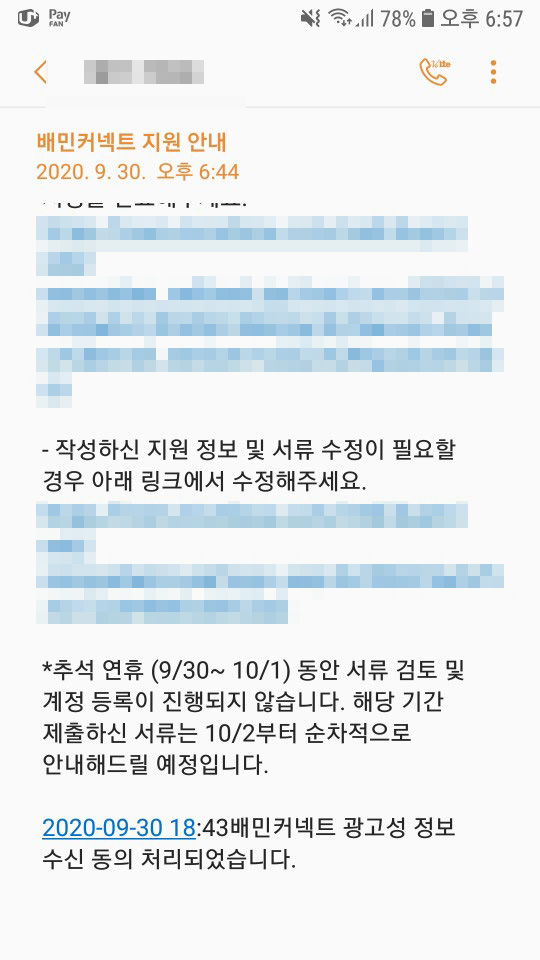 공고에서 지원 신청을 하면 한 통의 문자가 도착하고 그 하이퍼링크를 통해 어플을 다운 받은 후