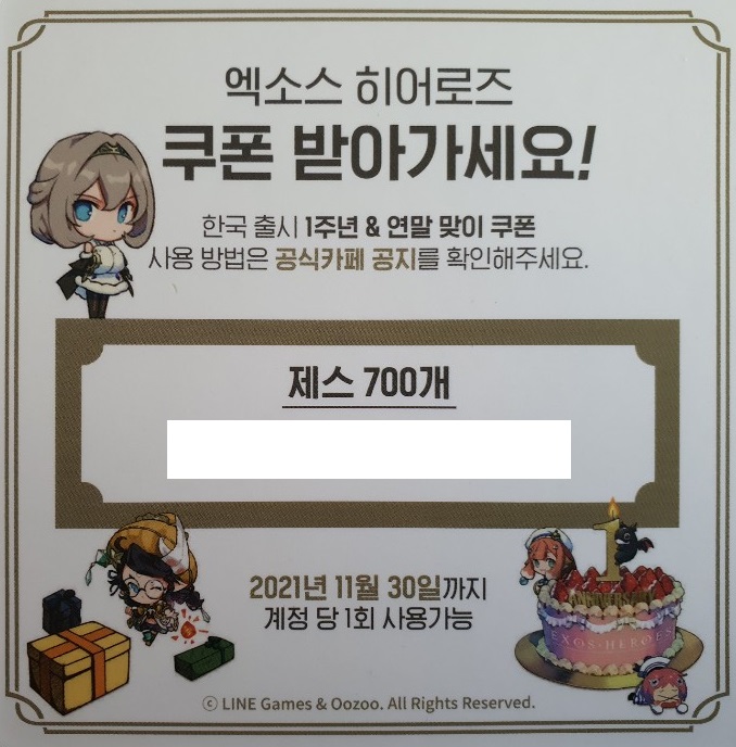 한국 출시 1주년 & 연말 맞이 쿠폰으로 700제스 쿠폰이 생겼습니다.