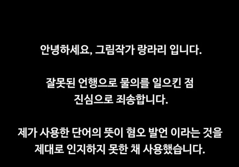 잘못된 언행으로 물의를 일으킨 점 진심으로 죄송합니다.