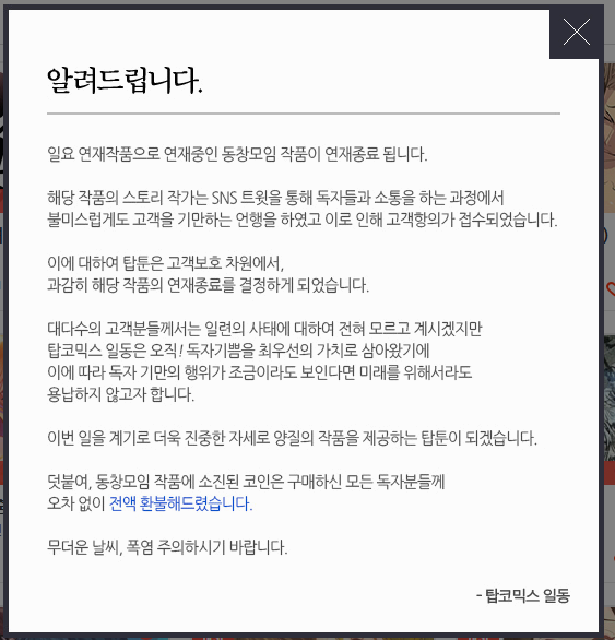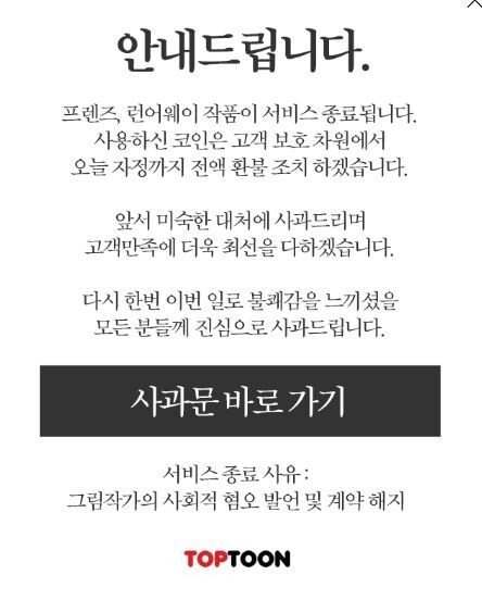 아무튼 다시금 사건으로 돌아와서, 탑툰은 나름대로 잘했다고 생각한다. 그렇지만