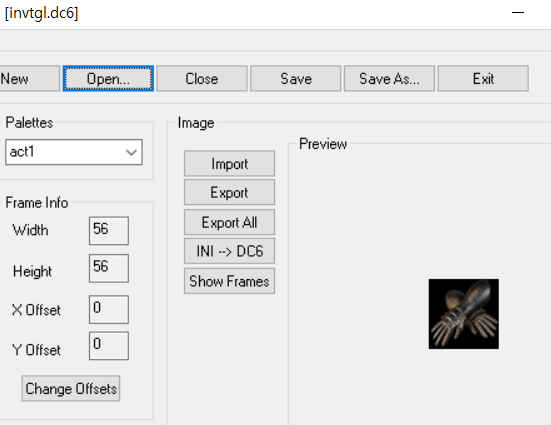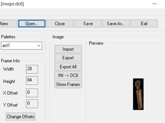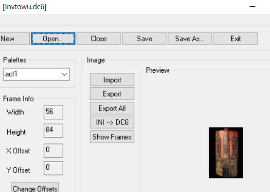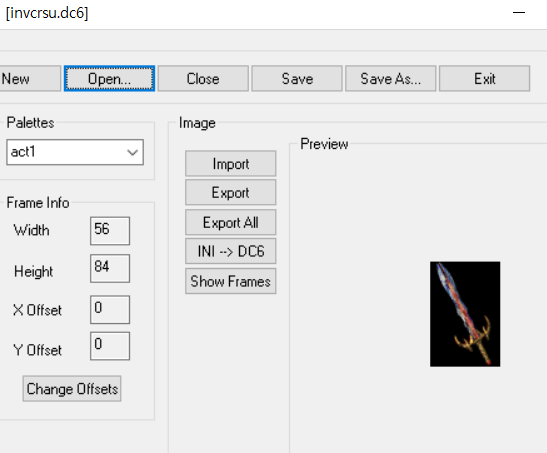 data 파일을 추출해서 items 폴더 내 dc6 파일들을 까낸 것까진 괜찮았는데 내가 찾으려는
