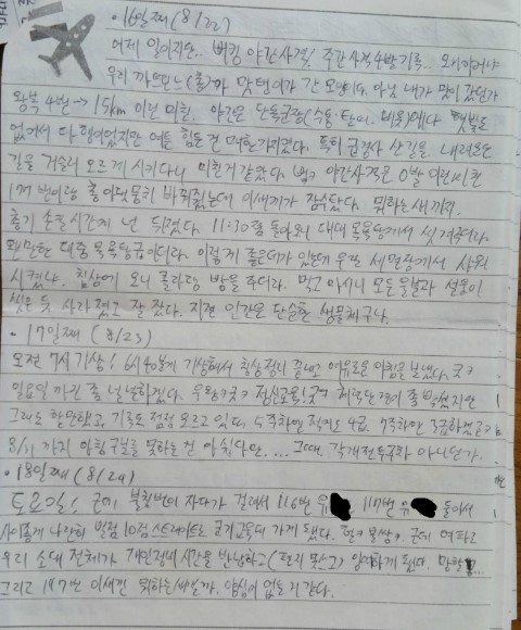 다행이었지만 여튼 힘든 건 매한가지였다. 특히 급경사 산길을, 내려오던 길을 거슬러 오르게 시키다니 미친