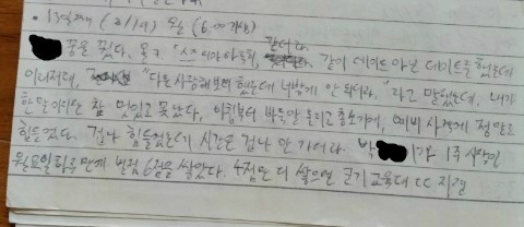 기억한다. 슬슬 분위기에 적응해서 일기도 상당히 밝아지고 있는 게 눈에 띈다. 정신병자처럼 개인 화기를