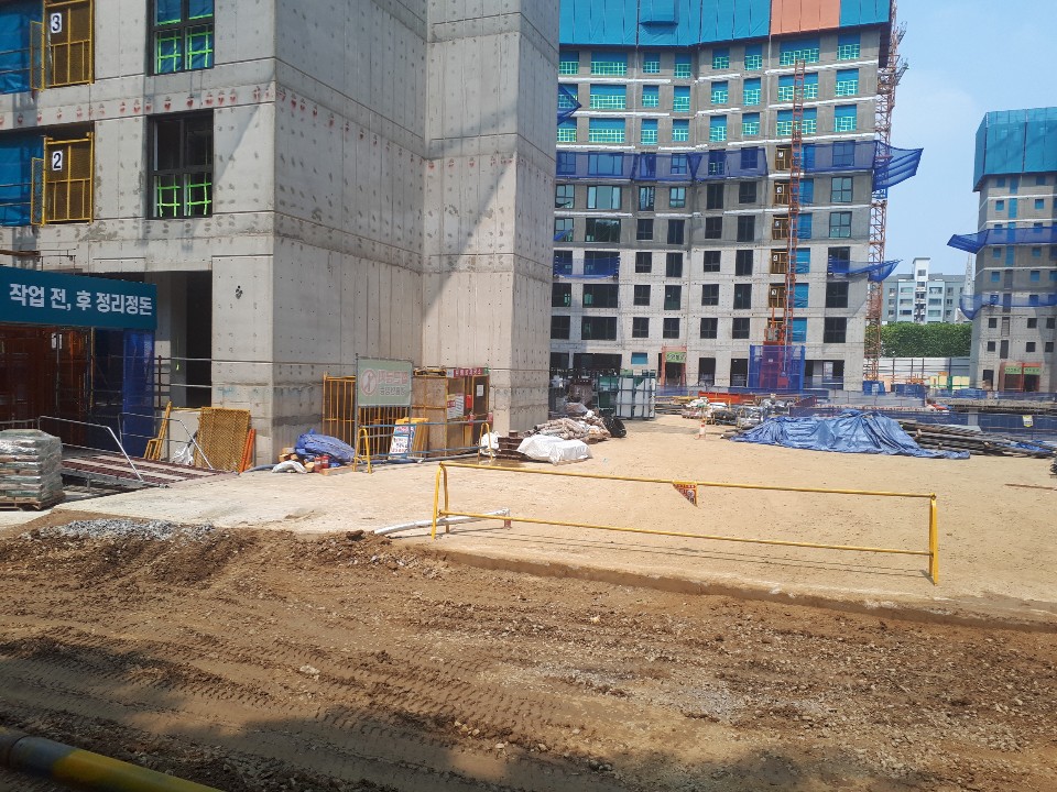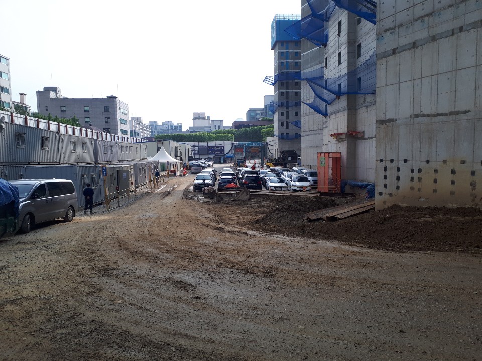 이 현장의 경우 좁기 때문에 레미콘차가 4대 이상 들어올 수 없었고 따라서 4대 이상이 안에