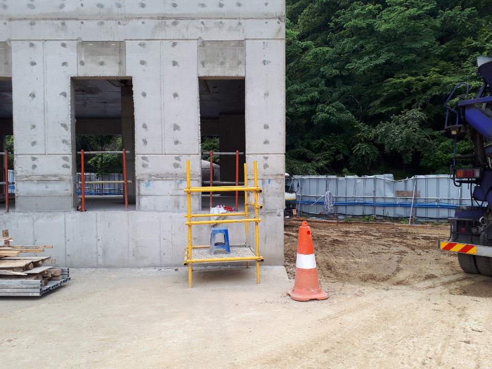 오후 14시 30분경 바닥 콘크리트 작업이 중반 이상 끝나가면서 신호수가 배치되어야 할 장소가