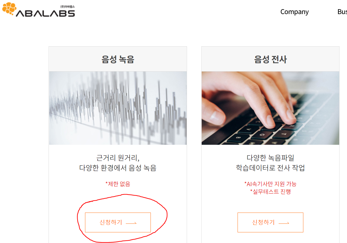 http://www.abas.co.kr/aba_form.php간단 요약1. 1시간 녹음하고2. 통과되면 1만 5천원 받을 수 있...