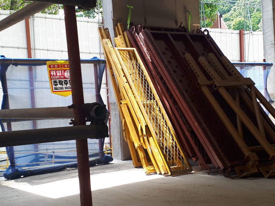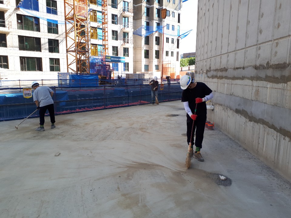 아침 작업 조회 후 팀에 소속되서 105동의 현장 정리를 하게 됐다. 물난리 안 벌어진 것이