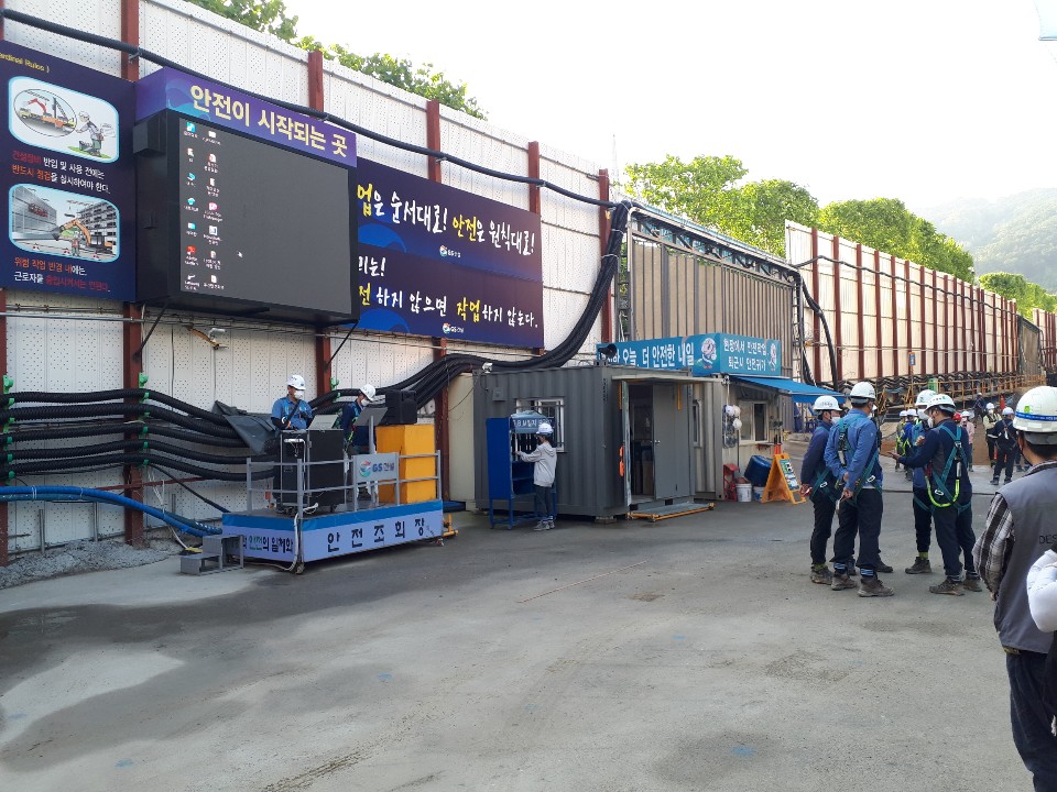 오전 9시. 흙바닥 위의 흙먼지를 빗자루나 밀대를 든 인원들이 한곳에 모으면 물삽을 장비한