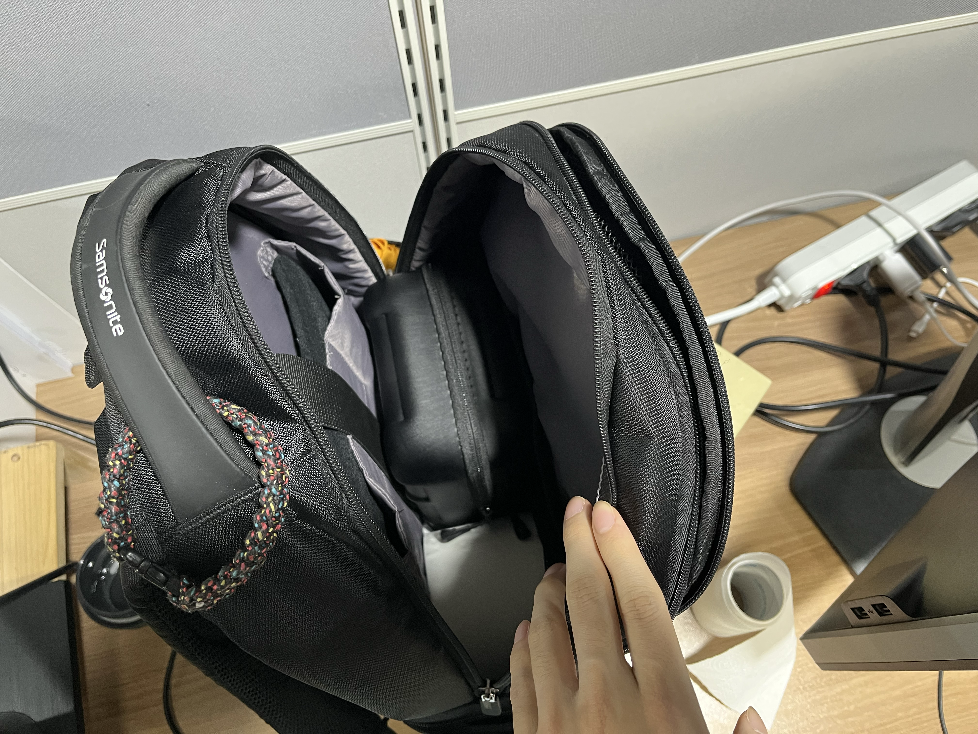 세워서든 눕혀서든 깔끔히 들어간다. 쓰고 있는 가방은 샘소나이트(Samsonite)의 02_36B-09010