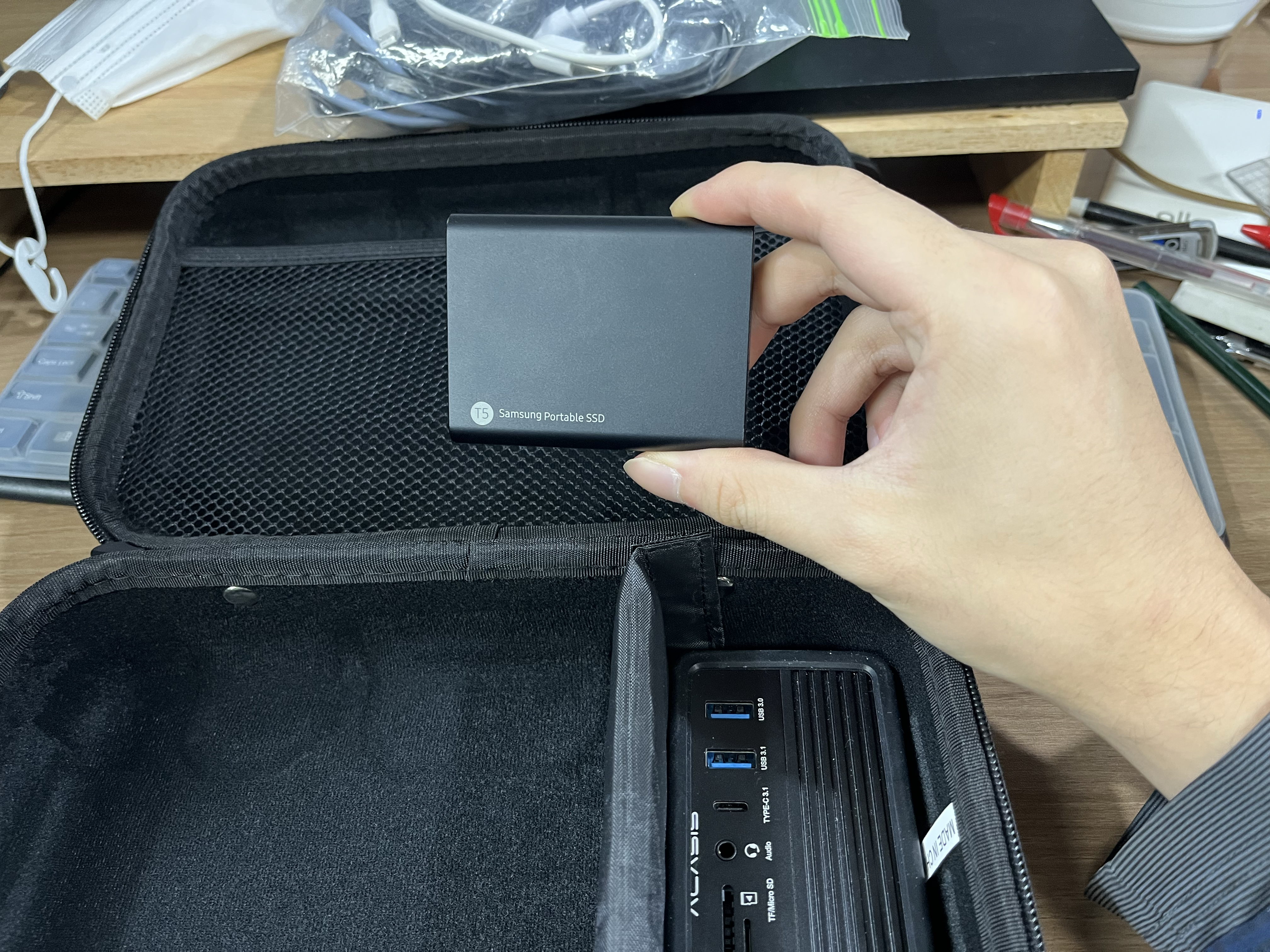 지금은 예정대로 멀티 허브와 USB 케이블, SSD만이 들어가서 다소 왜소한 상태. 케이블을