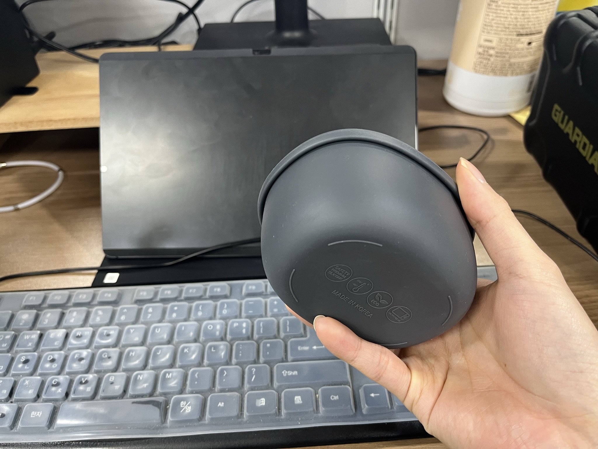 외관상 깔끔하고 현대적인 인상을 주면서도 크기와 둥근 모양새 때문인지 귀엽기도 하다. 실리콘으로