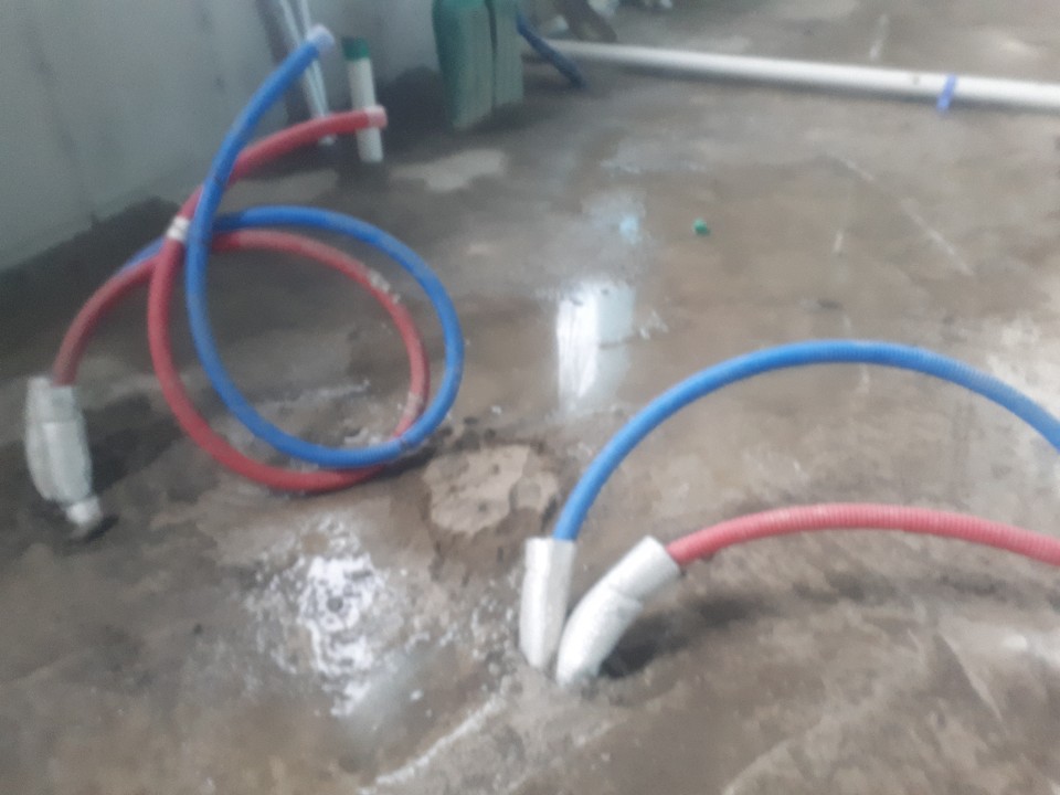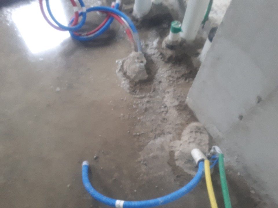 10시 넘어서부터는 방의 화장실 바닥면 물이 아래층으로 새는 공극부를 비닐로 두르고 시멘트를 붓는 작업을