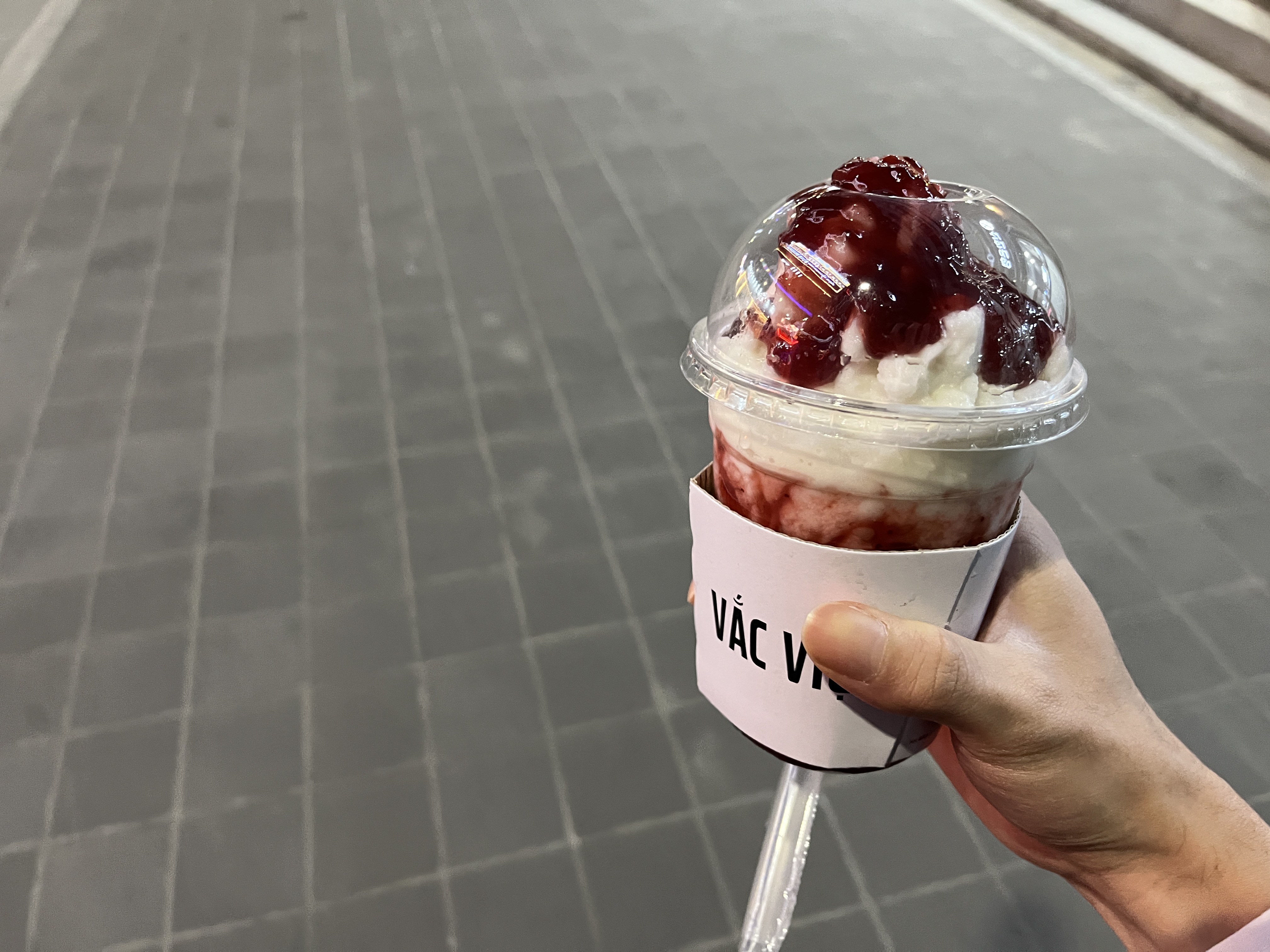 상당히 오랫동안 걸어다녔기 때문애 목이 마르기도 해서 모 카페의 베트남 코코넛 딸기 스무디를 먹어보았는데 처음엔